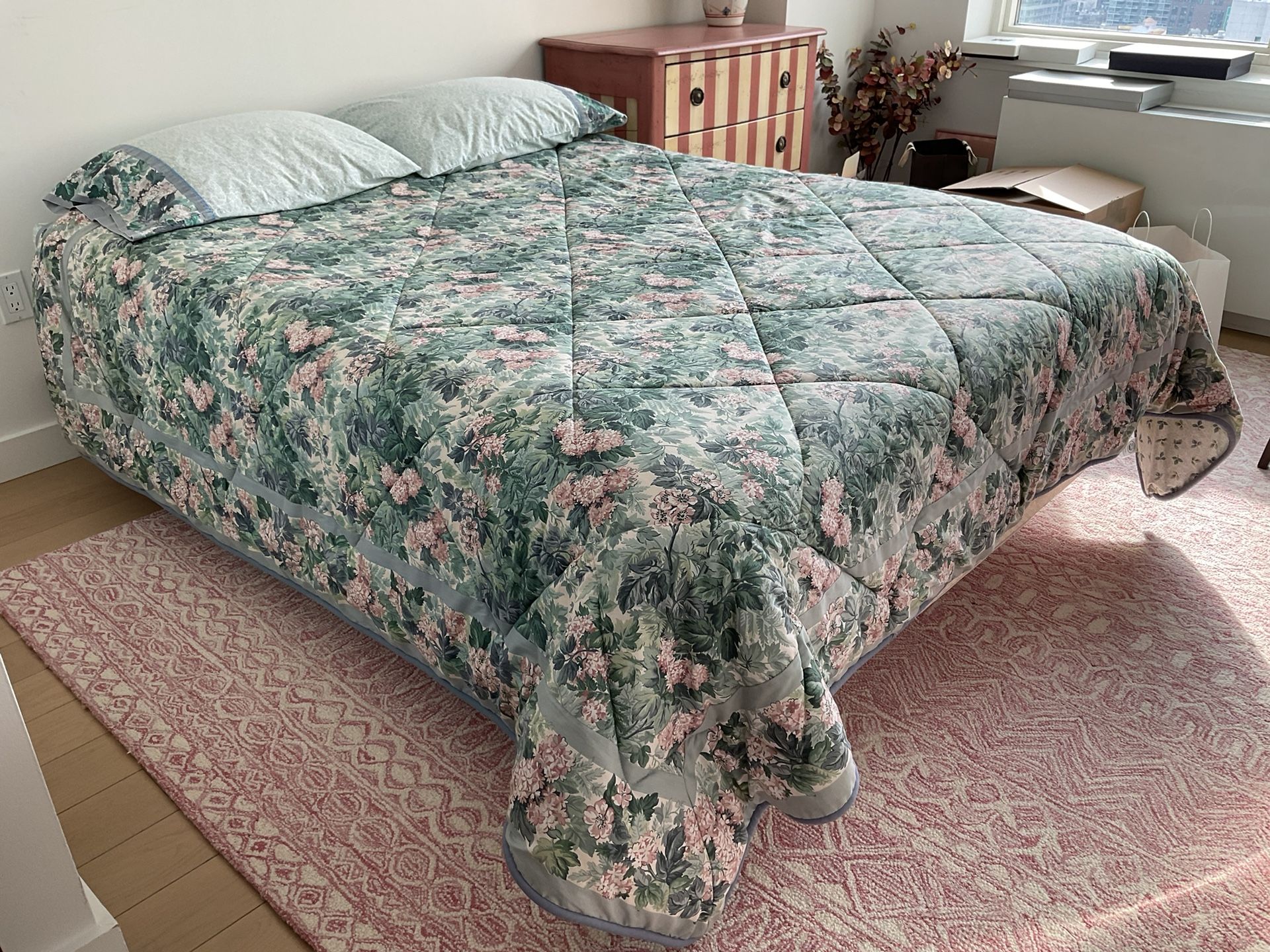 Queen size reversible comforter. Excellent condition. Covered a guest room bed. Barely used.