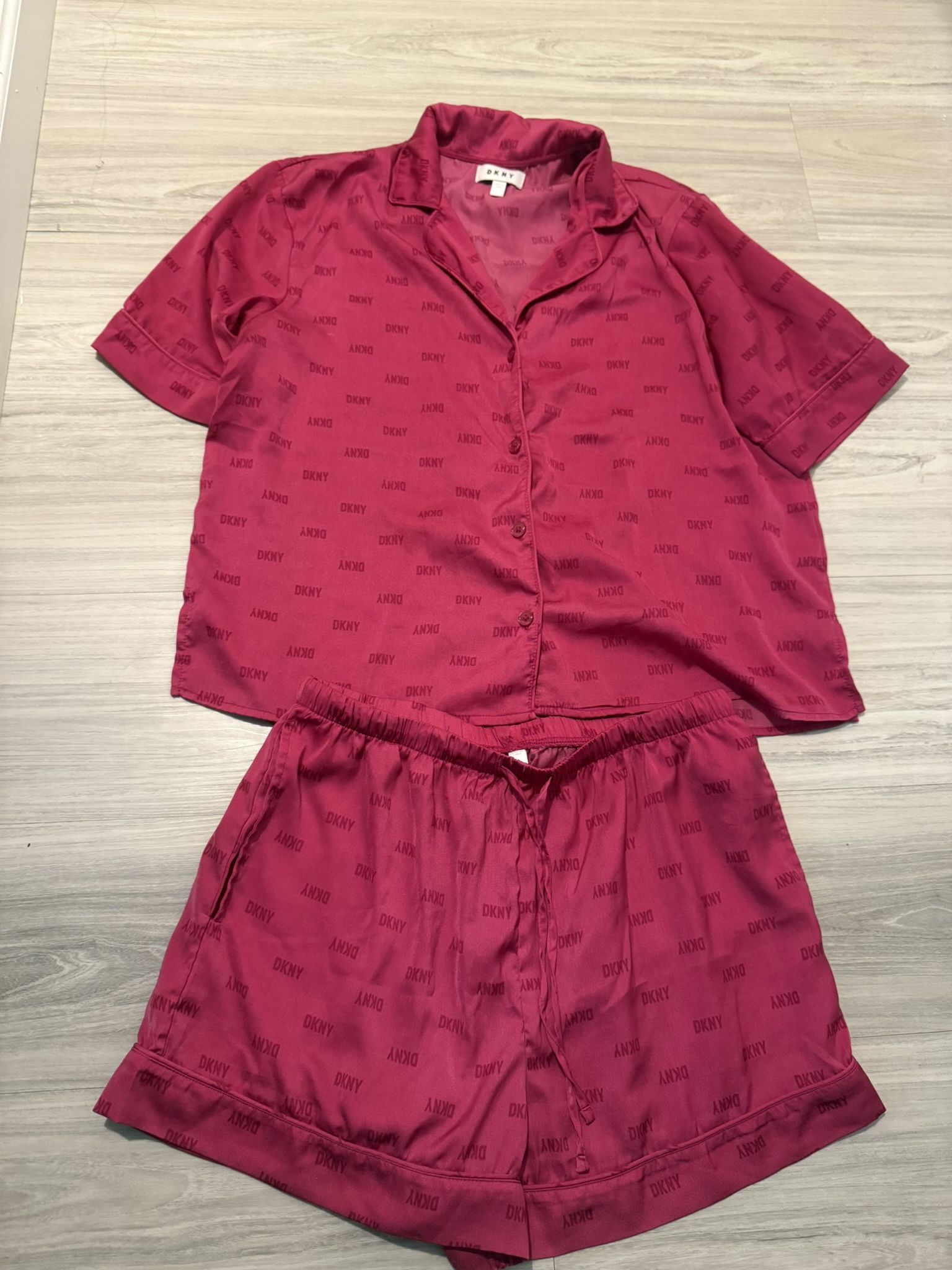 Women Small DKNY hot pink monogram-print short-sleeve pajama set