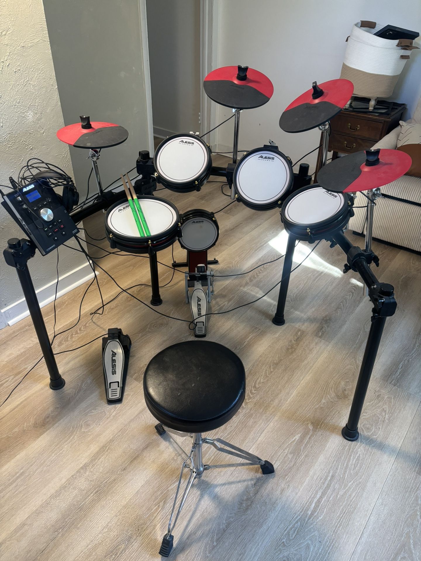Selling my Alesis Command X Mesh Kit Special Edition (9-piece) electronic drum set. The kit is almost brand new and in excellent condition. Mesh heads feel great and everything works perfectly. Includes: Alesis Command X Mesh Special Edition drum kit Drum module with hundreds of built-in sounds Rack and all pads/cymbals Kick tower and pedal Drum throne (seat) All cables and power supply Great for practicing quietly with headphones or recording via USB/MIDI. Selling because I don’t use it as much as I thought I would.
