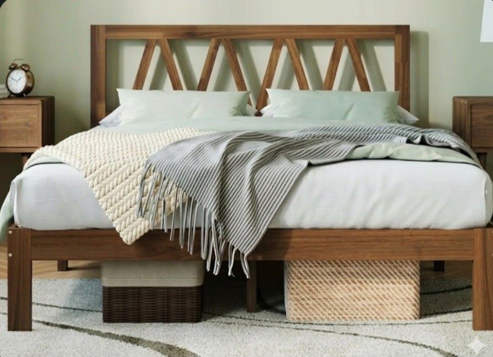 Novilla Queen Bed Frame with Headboard, Queen Size, Solid Oak Wood, No Box Spring Needed, Easy Assembly