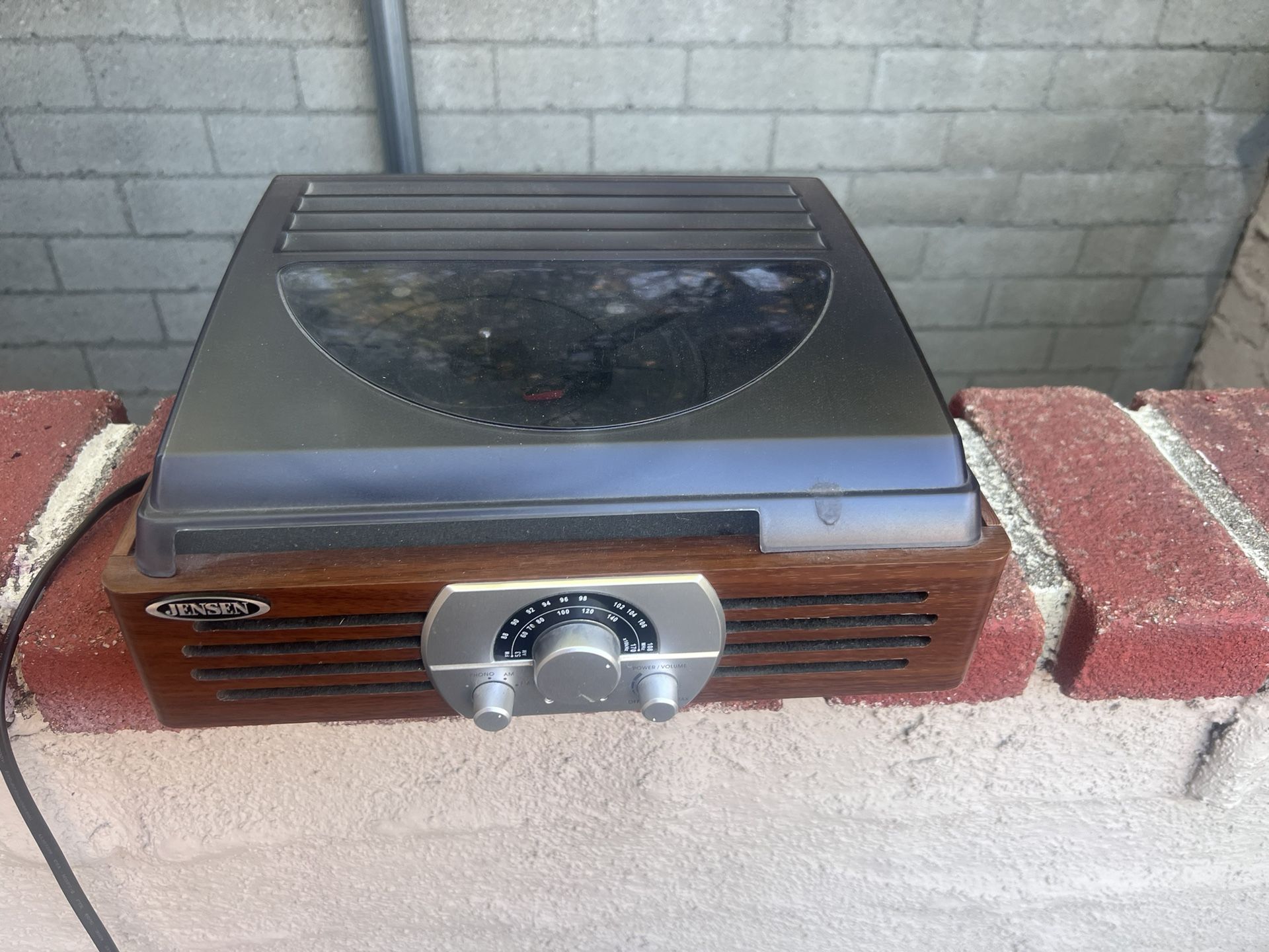 Hi! This is a Jensen record player. It has great sound quality, and it works really well. I’m looking to sell this for at least $25. Let me know if you would like more details!