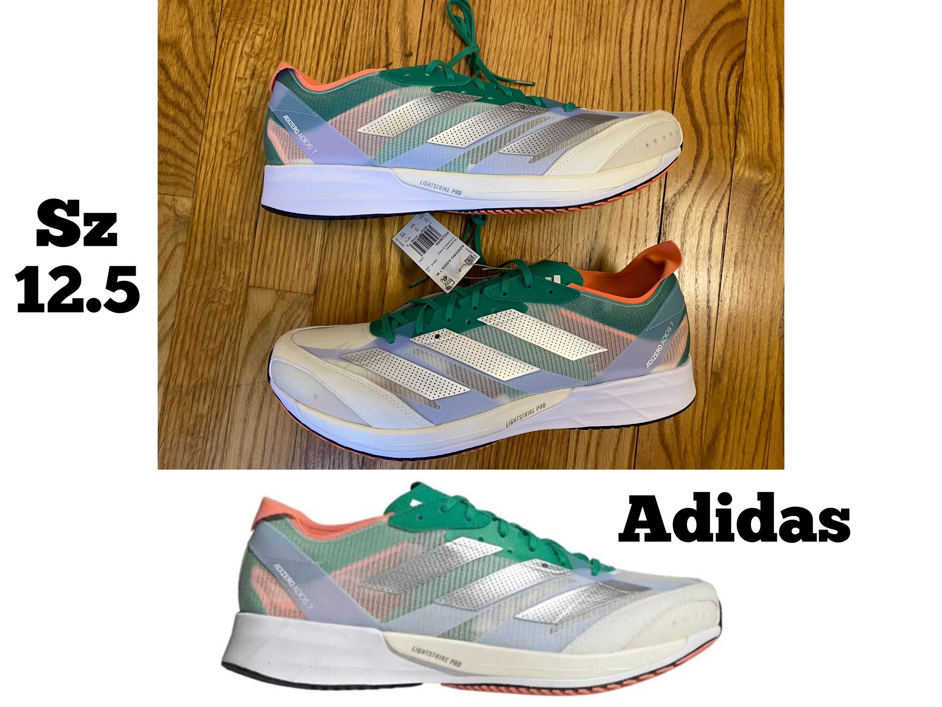 Adidas Adizero Adios 7 Color: White Tint/Silver Men’s Size 12.5 New No Box!