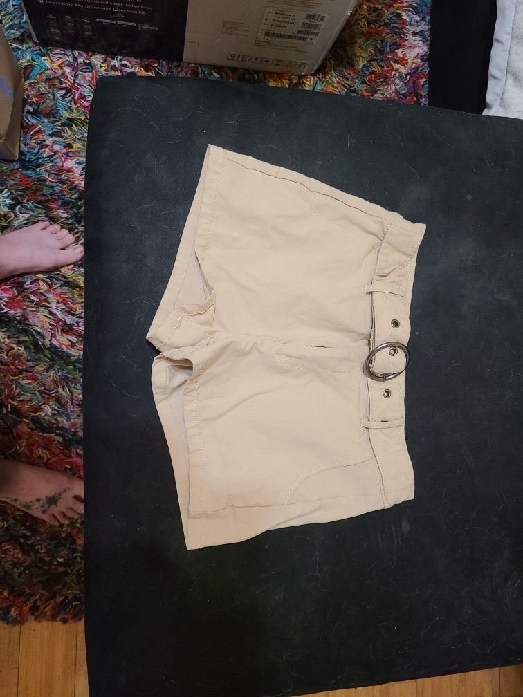 Tan/khaki color Adorable buckle in built in belt Size medium