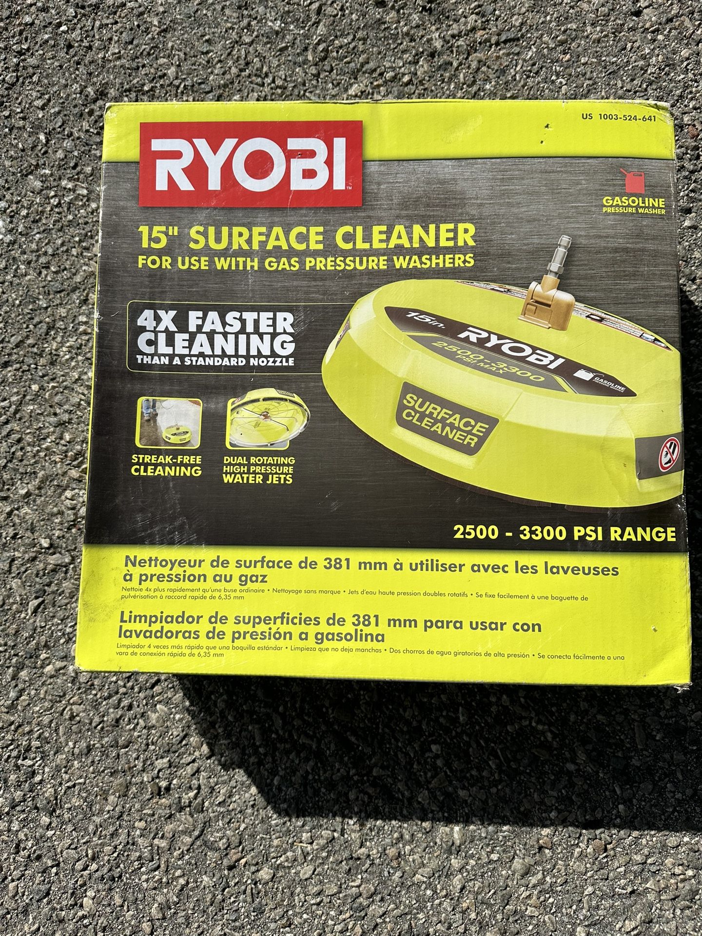 Ryobi 15" Surface Cleaner for gas pressure washers. Perfect working condition like new, asking $45