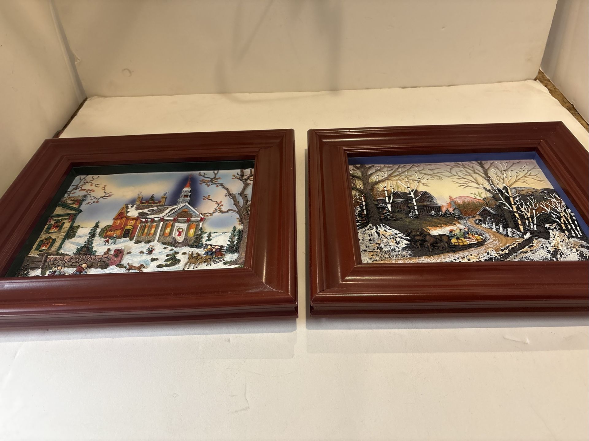 Set of two very nice and detailed Christmas in Wonderful framed Art picture. Each measures 11X13. Price is for both.
