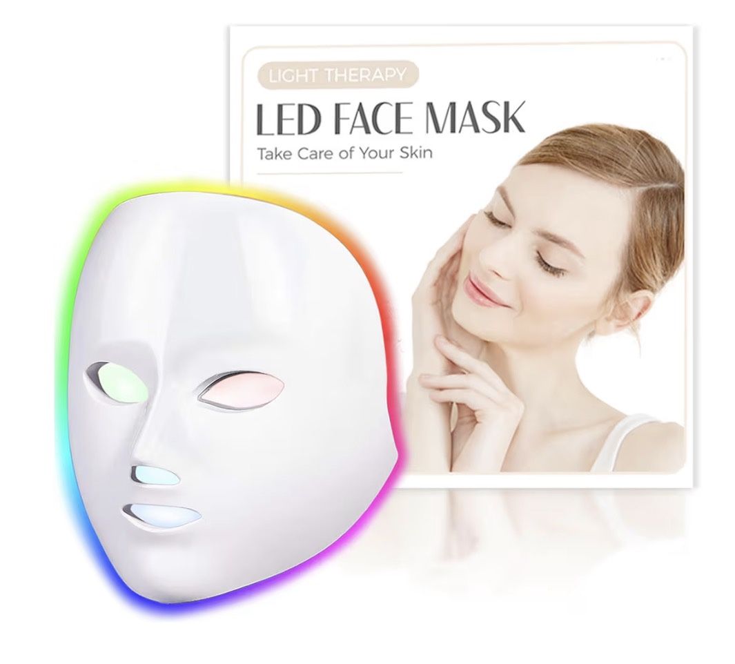 LED Face Mask Light Therapy, Red Light Therapy Mask with 7 Colors, 850nm Infrared & Red Light Therapy for Face, Portable Anti-Aging Skin Rejuvenation Tool with Timer for Home Use