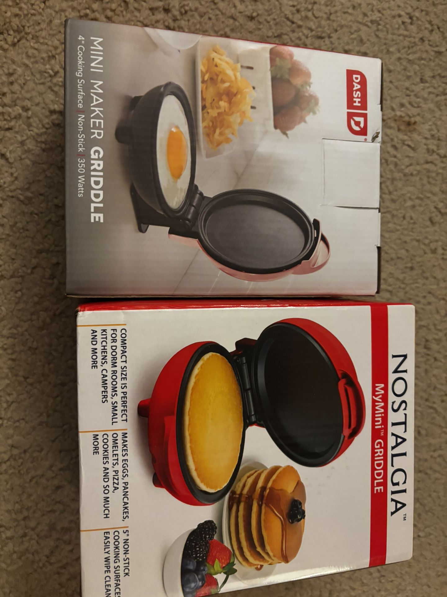 selling both of these brand new mini skillets. I once had an obsession with mini things like this and never even used them. One is pink, one is red. I’m selling both together for $18