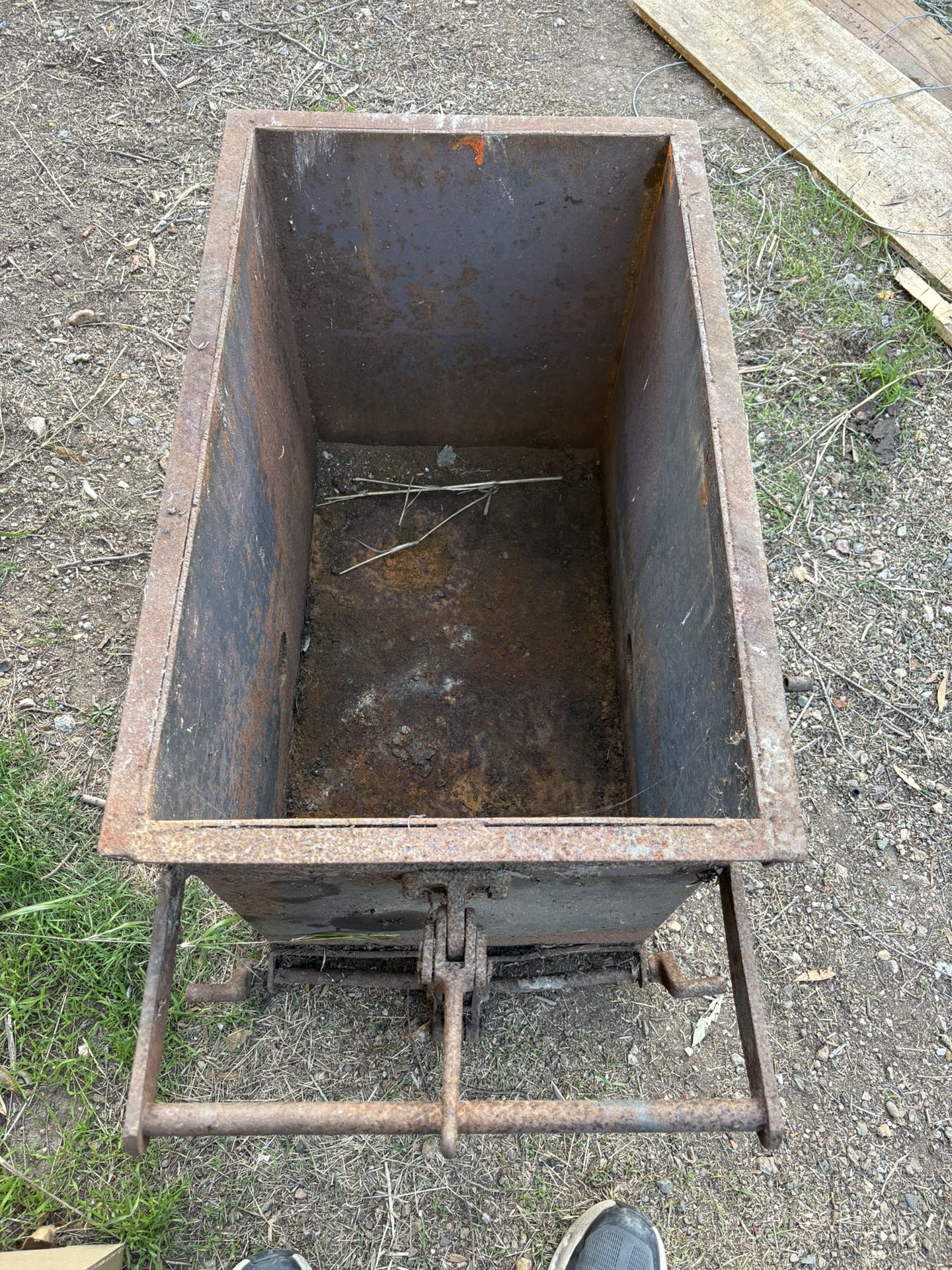This is heavy. It has a washout pipe on bottom. No longer have the base or wheels. This can be made into a planter, yard art, or repurposed into a vintage salvage table.