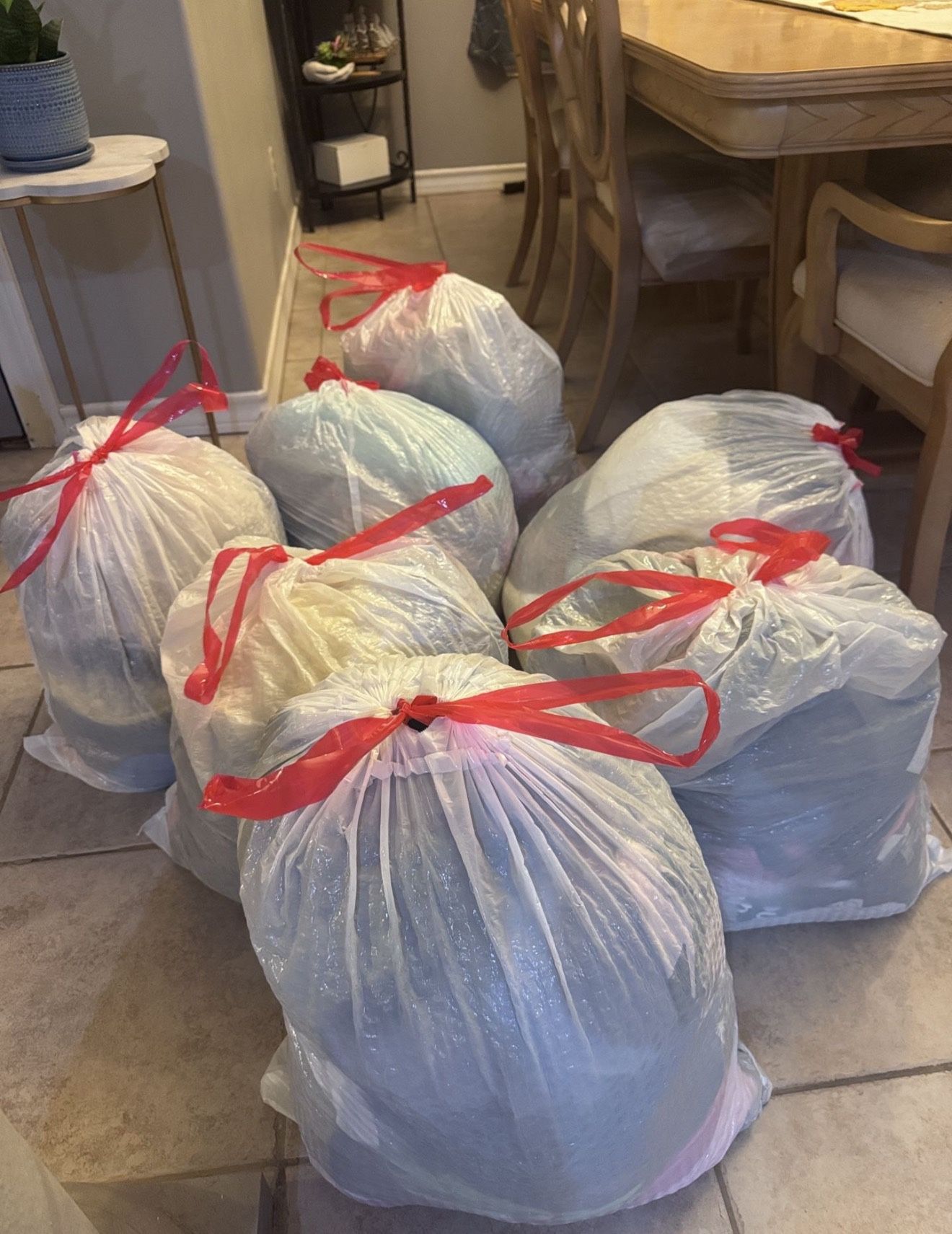 I have 7 bags full of women's clothes that I need to get rid of. Each bag has a variety of items including work pants/shirts, going-out pants/shorts/tops, skirts, bathing suits, t-shirts, and more. Sizes range from small to large. One of the bags has clothing for an older woman (sweaters, shirts, pants) in L & XL sizes. ****$30 per bag (OBO).***** Tengo 7 bolsas llenas de ropa de mujer que necesito vender. Cada bolsa trae una variedad de prendas como pantalones/camisas de trabajo, pantalones/ cortos/blusas para salir, faldas, trajes de baño, camisetas y más. Las tallas van de chica a grande. Una de las bolsas es ropa para mujer mayor (suéteres, camisas, pantalones) en tallas L y XL. ****$30 por bolsa (o mejor oferta)****