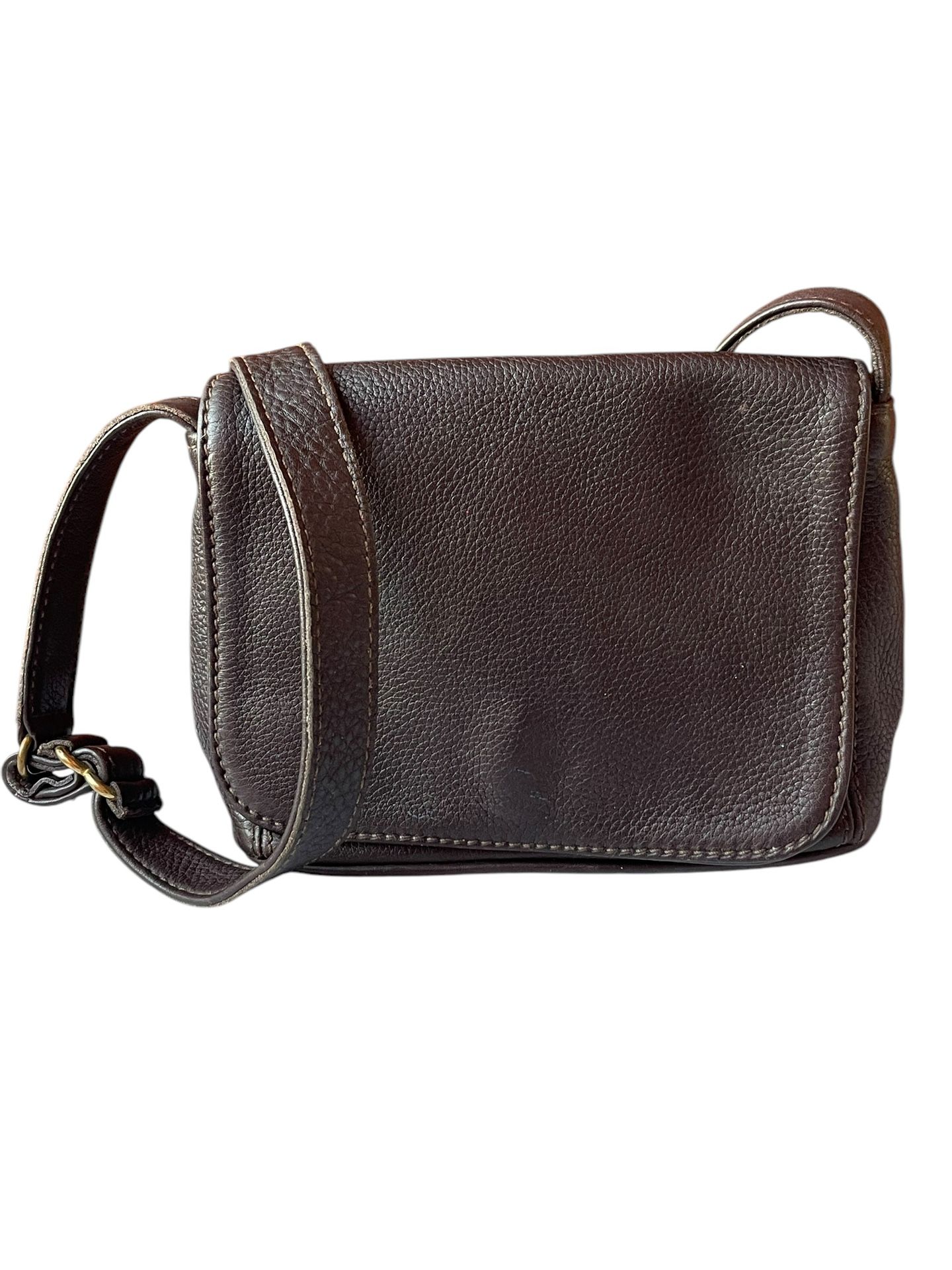 Vintage COACH #4929 Brown "Small Full Flap Natural Grain" Leather Bag 9”Lx6-1/2”Hx3”D Brown leather Flap snap closure Pockets inside Strap drop 20”