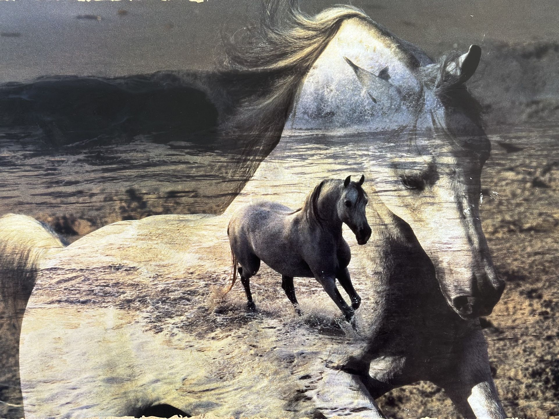 Large framed horse art print with real wood frame. Approx. 34–35 inches wide. Beautiful rustic / western / equestrian décor. Clean, solid frame —ready to hang. From smoke-free home. Pickup only.