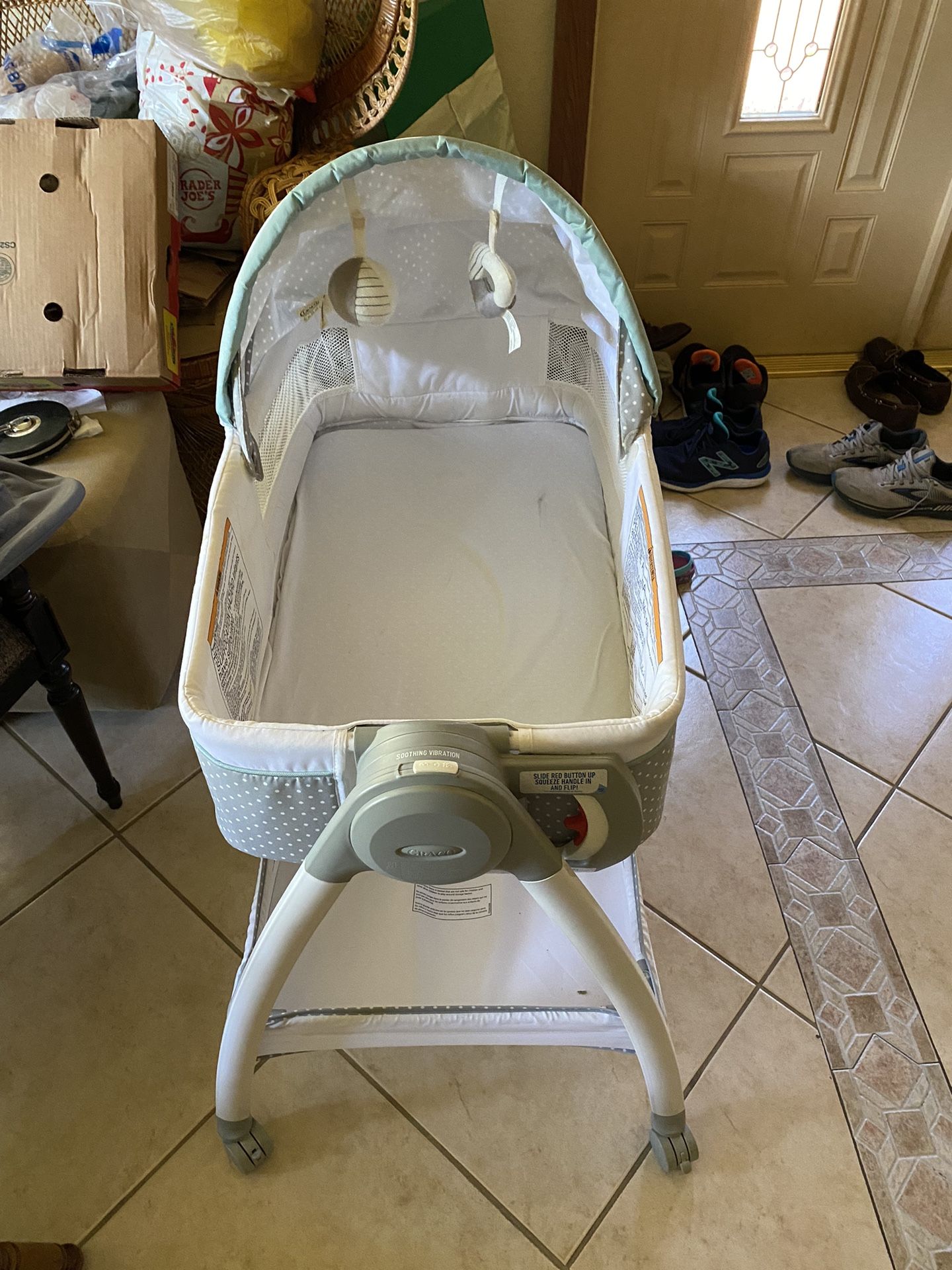 Dream Suite is a reversible bassinet and changer, all-in-one! Now parents can have a dedicated sleep and changing space for baby conveniently located in their room. The cozy bassinet soothes baby with 2-speed vibration, allows air flow and visibility with mesh sides, blocks light with the canopy, and entertains with soft toys. The changer features easy to wipe clean fabric and can be used up to 30 lbs. - even after baby no longer sleeps in the bassinet. The large storage basket keeps baby's essentials close by and the wheels make the bassinet easy to move to keep baby close by. • Complete bedside care center features reversible bassinet and changer all-in-one • Extended use changer allows for more diaper changes, up to 30 lbs. • With two speeds of vibration to choose from, you can find just the right setting to soothe baby • With two speeds of vibration to choose from, you can find just the right setting to soothe baby • With four locking wheels the bassinet can be effortlessly maneuvered throughout the home allowing baby to be wherever you are