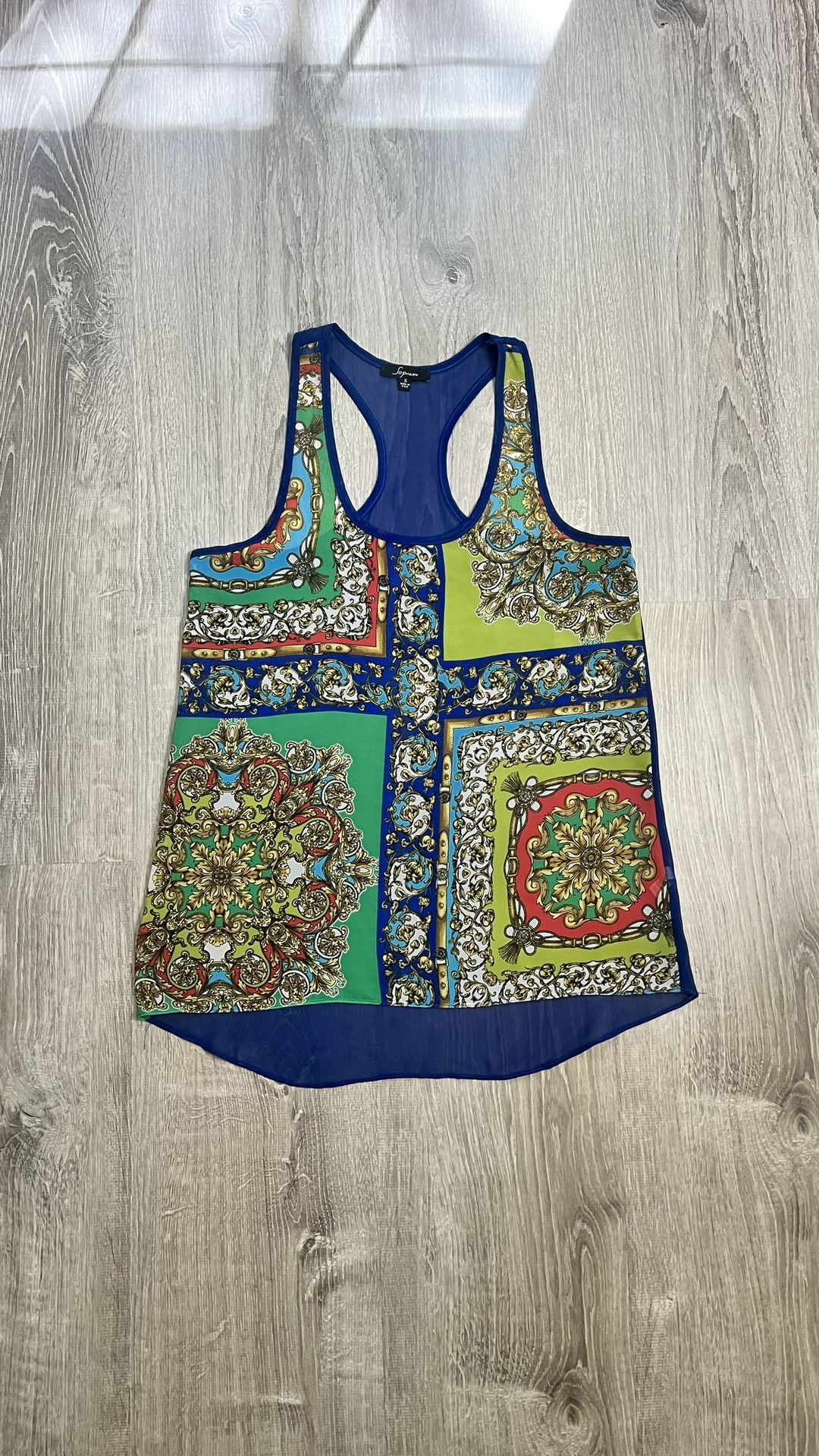 Soprano Small Navy Blue Royal Gold Red Green Sheer Racerback Tank Top Blouse Y2K