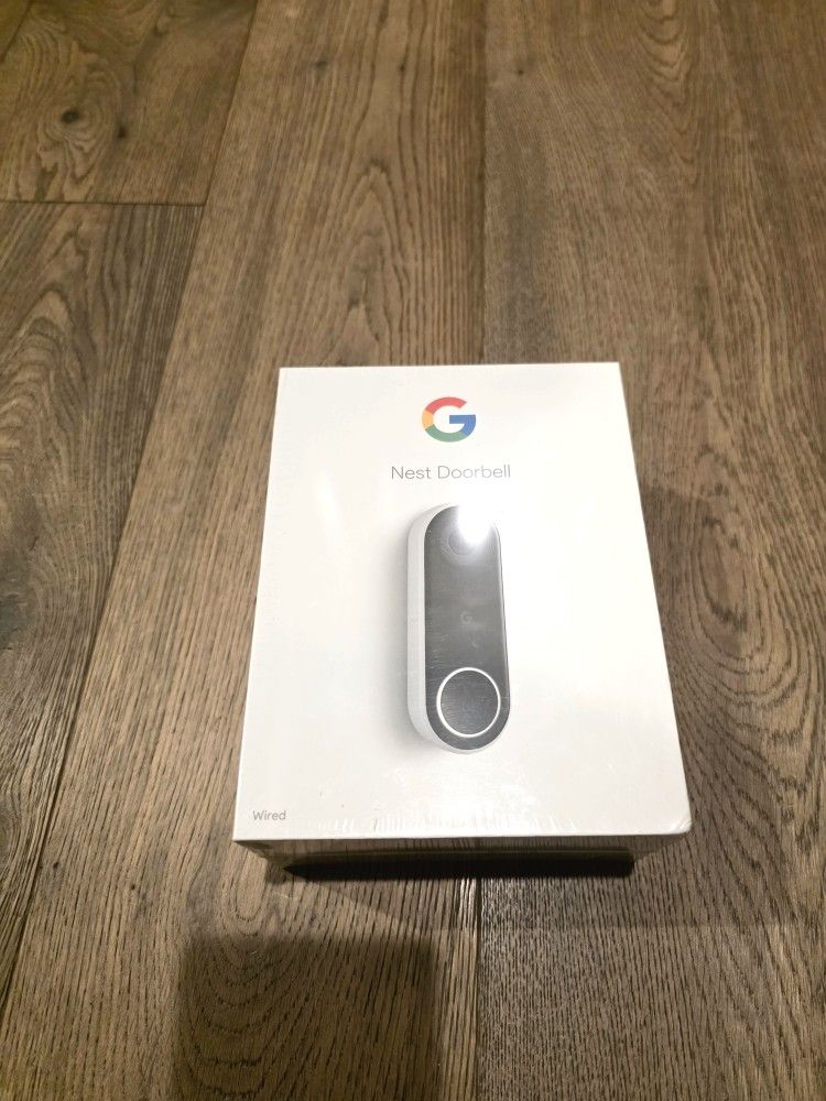 Brand new Google Nest Doorbell (Wired). Factory sealed, never opened. Features: HD video with HDR Person, motion, and sound alerts Two-way talk Night vision Works with Google Nest / Google Home Continuous power (no battery charging needed) This is the wired version and requires existing doorbell wiring. Perfect for homeowners or rentals. Retail box included. Local pickup only. Cash preferred.