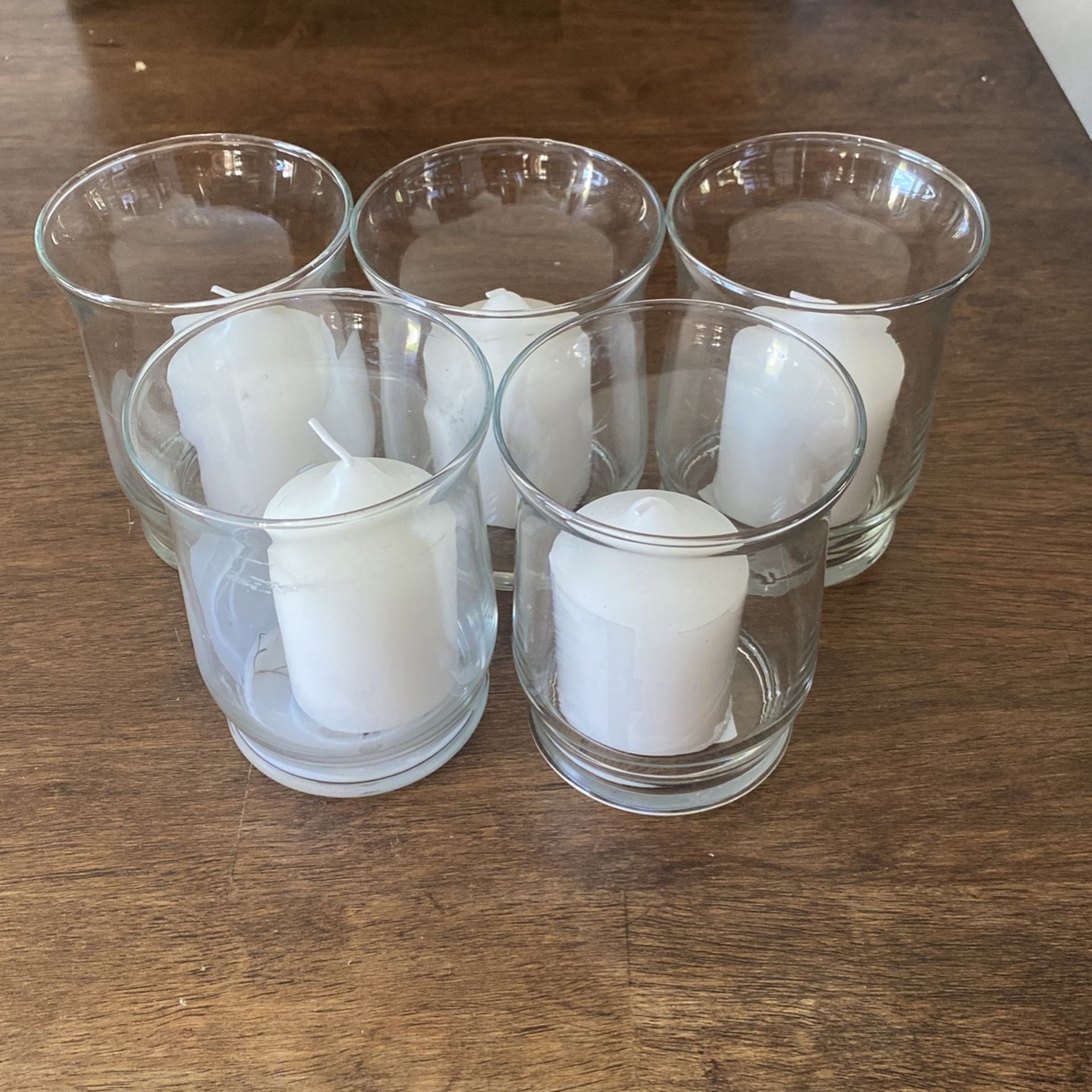 5 Short Pillar Candle Holders with Candles