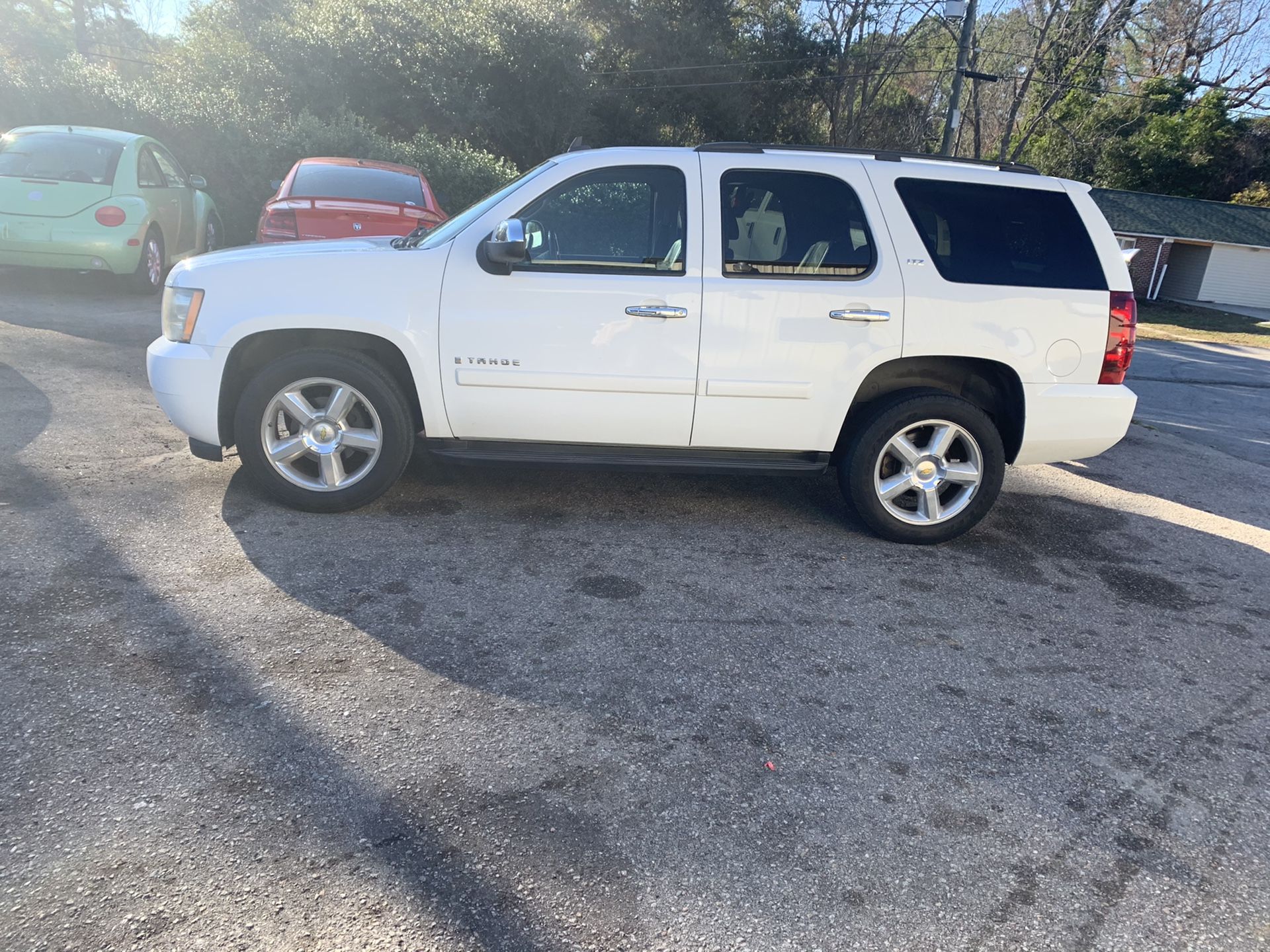 💥Great deal💥 1 OWNER VEHICLE! 2008 Chevy Tahoe LTZ 120,000 miles Fully loaded leather, heated seats, sunroof, DVD player and more! No rust No mechanical issues at all! Vehicle has been in SC all itʼs life! Heat and A/C work great truck! Call {contact info removed} for more info!