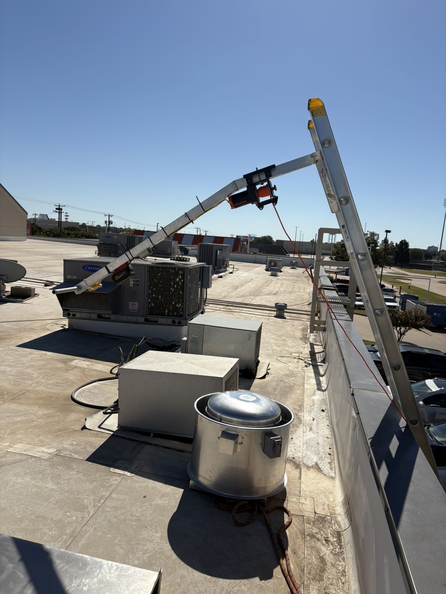 Light units up to roof easily with ladder hoist . Great for hvac , roofers ect