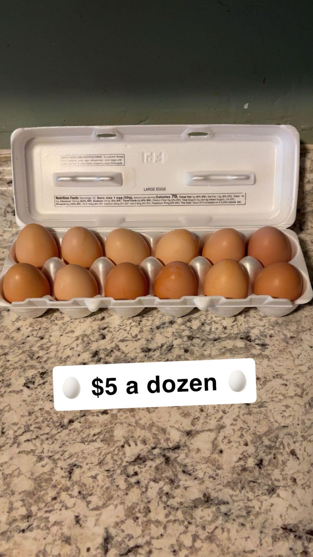 $5 a dz Collected daily. 5 dz washed 1 dz not washed MUST PICK UP 12th/Elvira area
