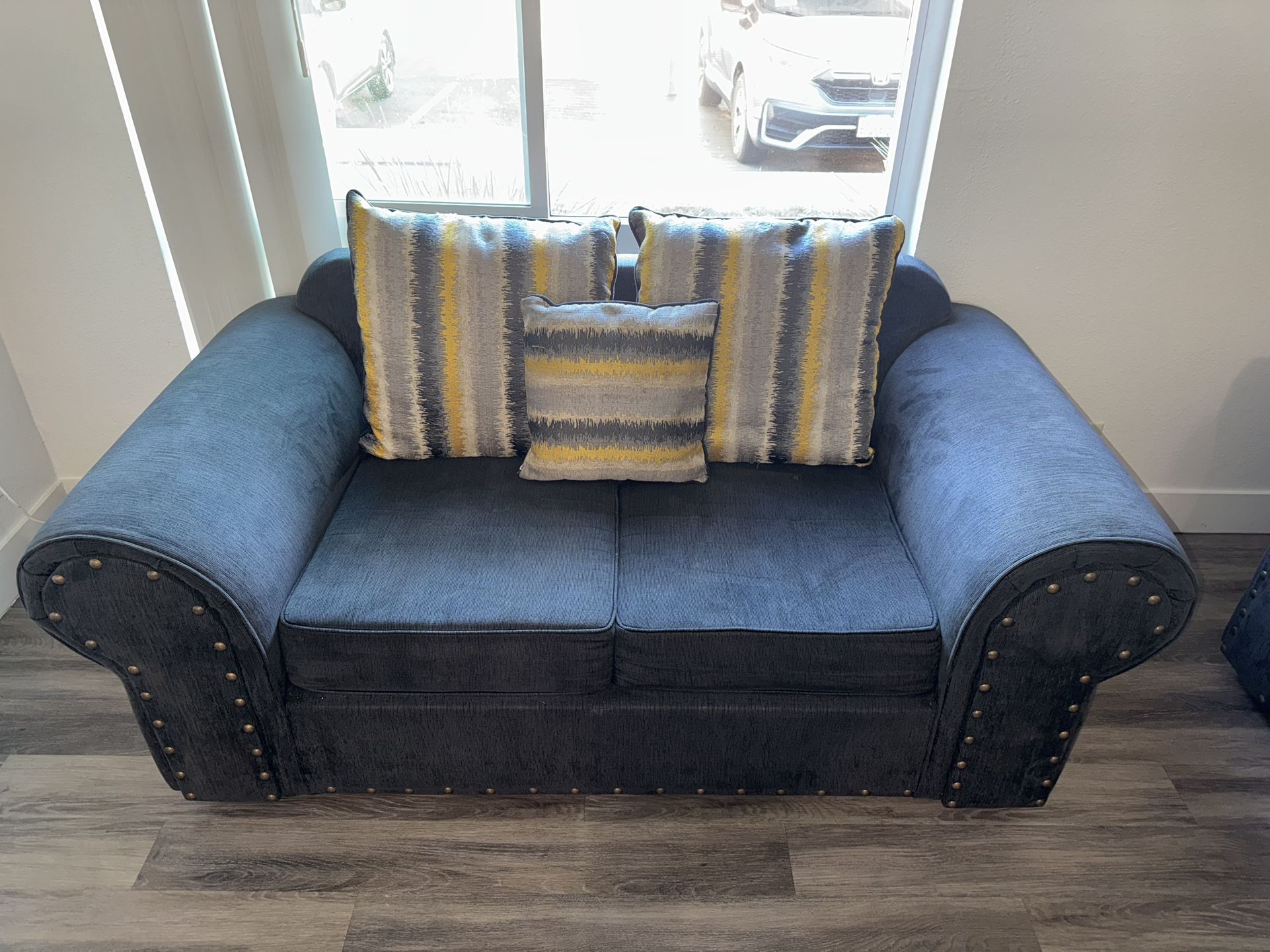 Couches Two Couches Includes Pillows (Underneath is Ripped, Can be Stapled Back to Bottom of the Couch) Color: Dark Gray (Greenish), Gold
