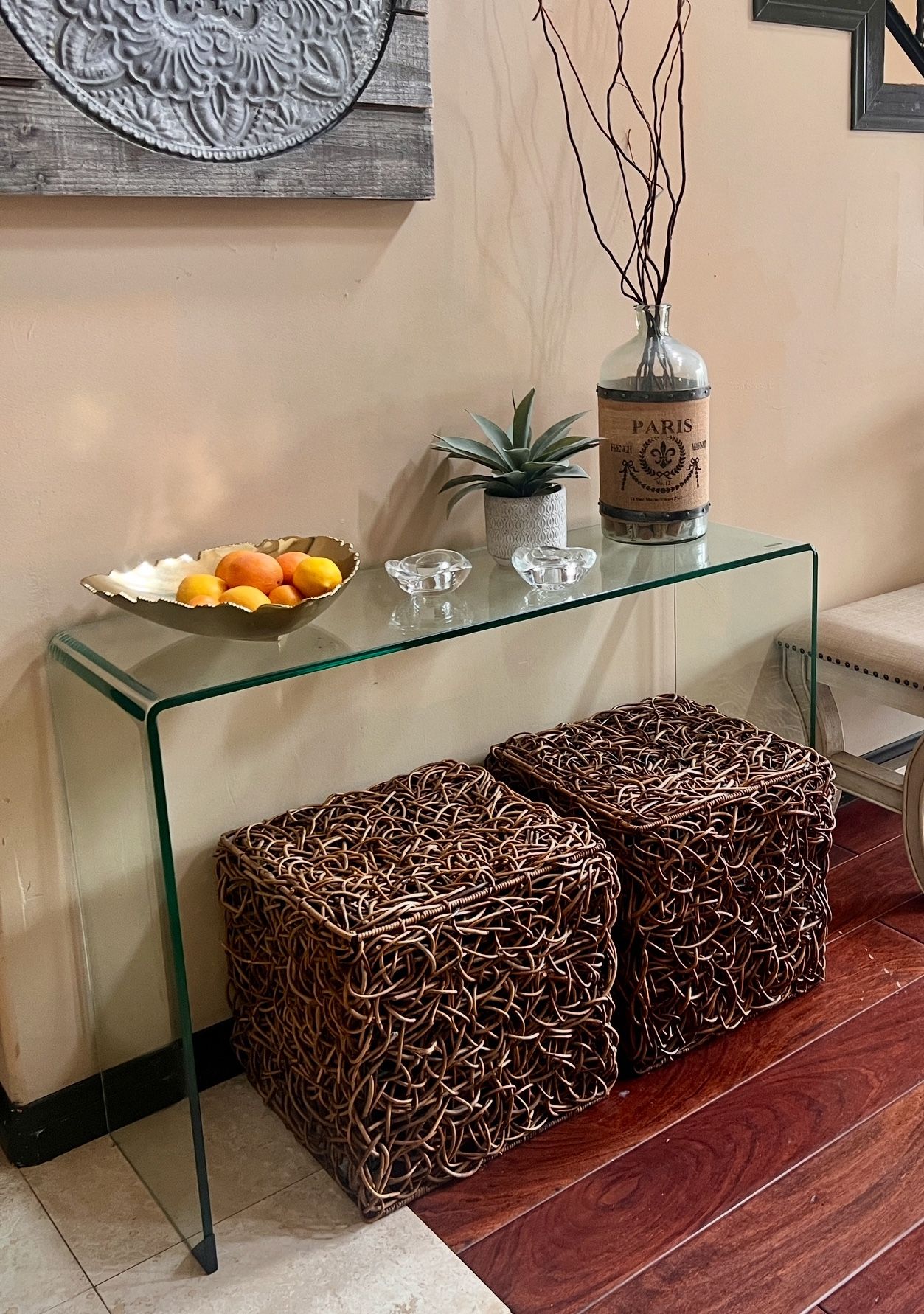Glass Console 43 1/2” wide x 14 1/2” deep x 29 1/2” high