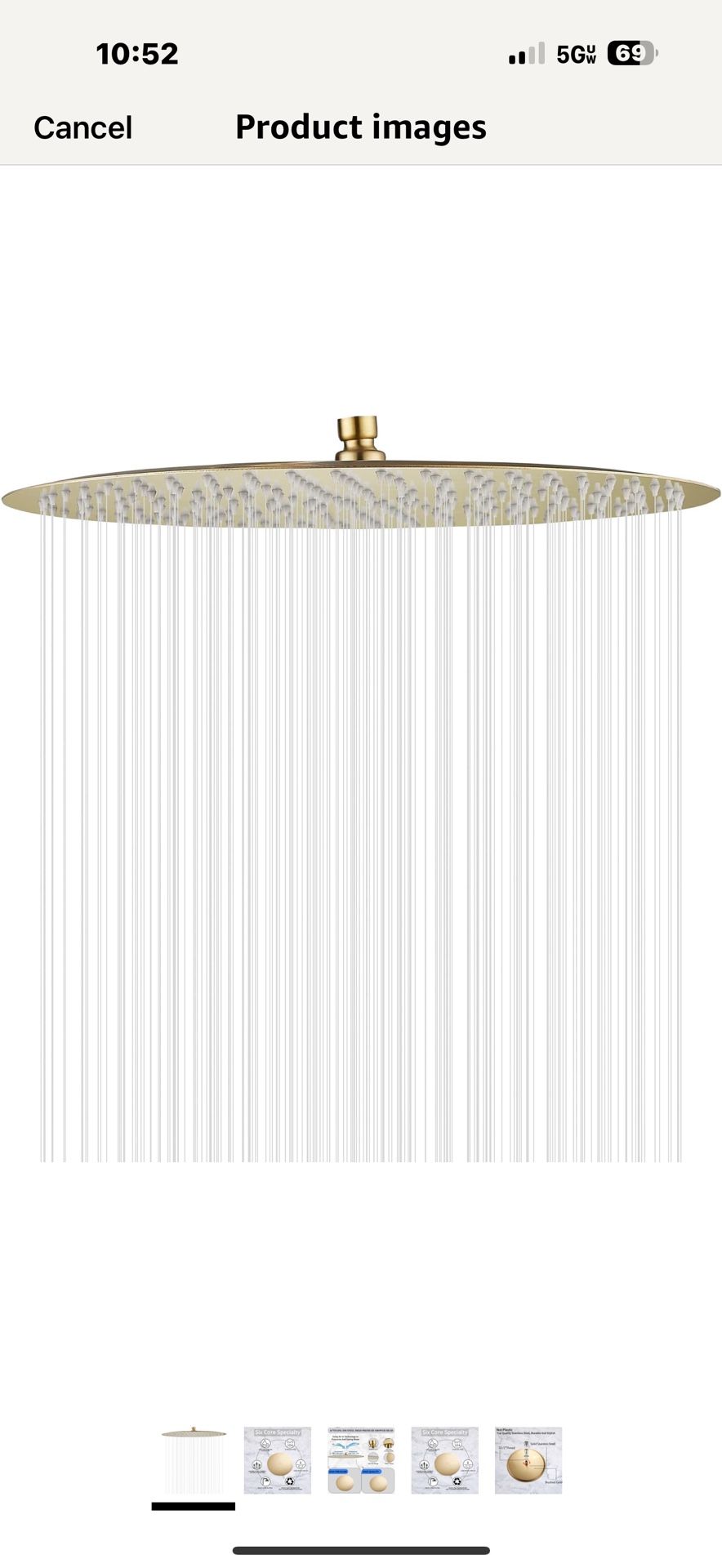 GGStudy High Pressure Round Brushed Gold Shower Head 16 Inches Large Stainless Steel Shower Heads,Ultra Thin Rainfall Bath Shower 1/2 Connection Shower Head Rain SC