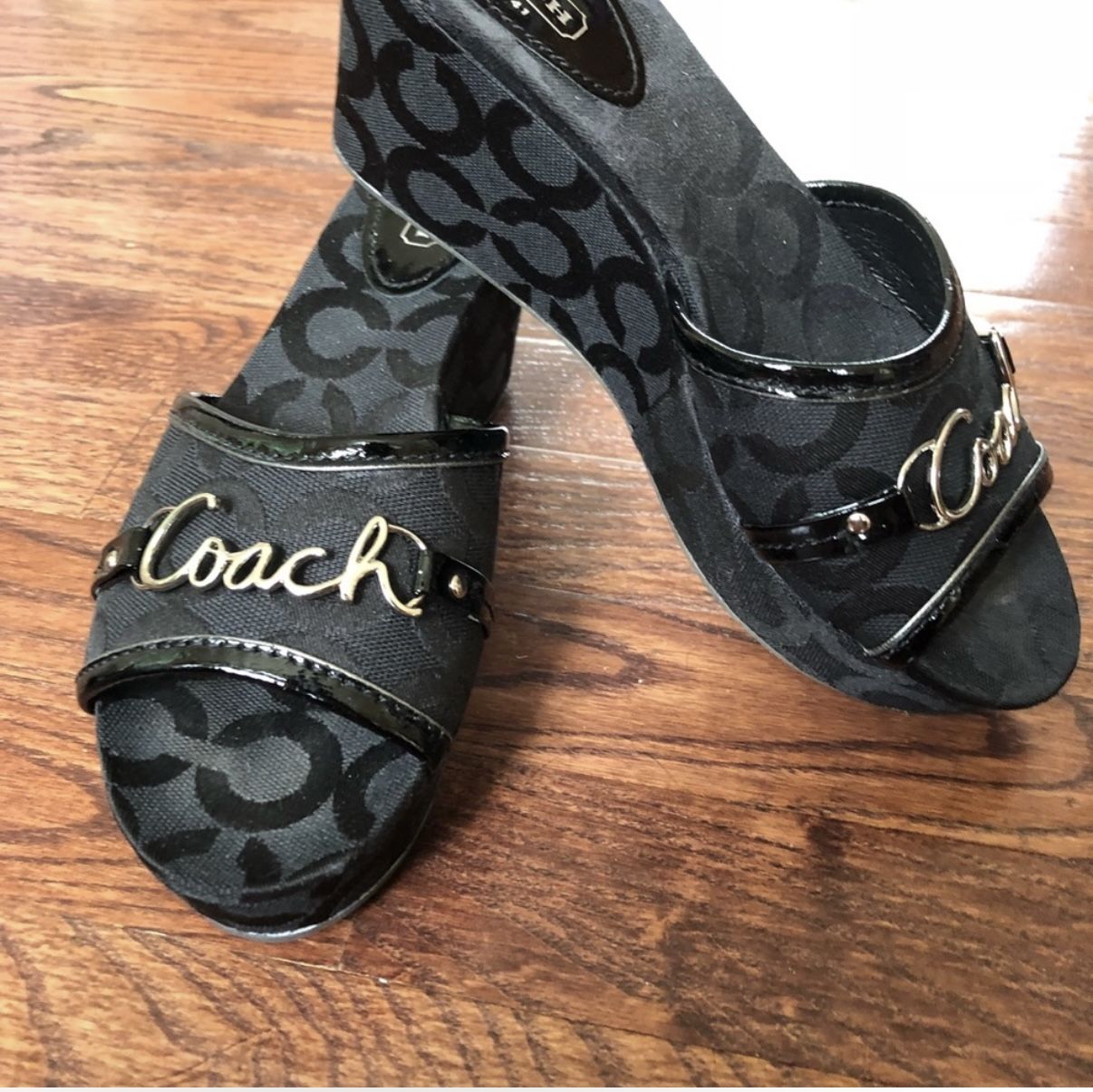 Women's size 6.5 (true to size). Classic Coach monogram canvas with logo detail. good condition Perfect for Y2K / vintage / summer fits Easy slip-on wedge, comfy + stylish. #coach #y2k #vintagecoach #wedges #summerheel