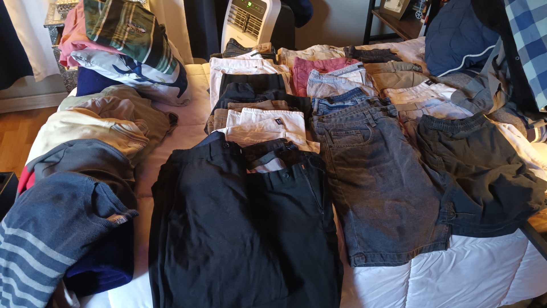Dress shirts , dress pants , jean shorts Shorts tshirts , sweaters , shirts All good shape no rips no stains Cleaning out my closet , over 25 items Selling as bundle