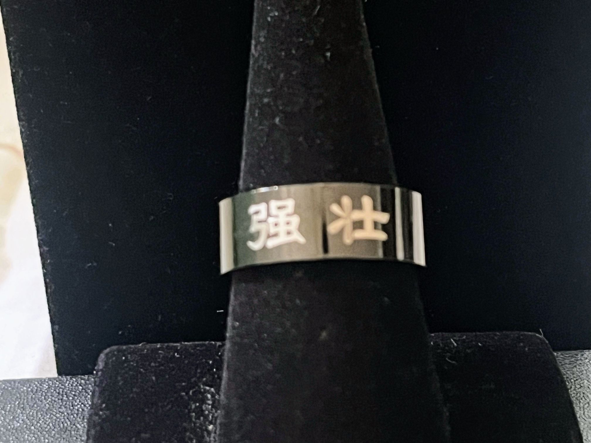 Stainless Steel Chinese Band Ring Black “ strength “ Size 9.5 New asking $25 Firm pick ups only No delivery No holds