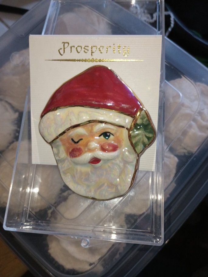 Beautifully hand painted Santa pin. 3"x 2 3/4" in size