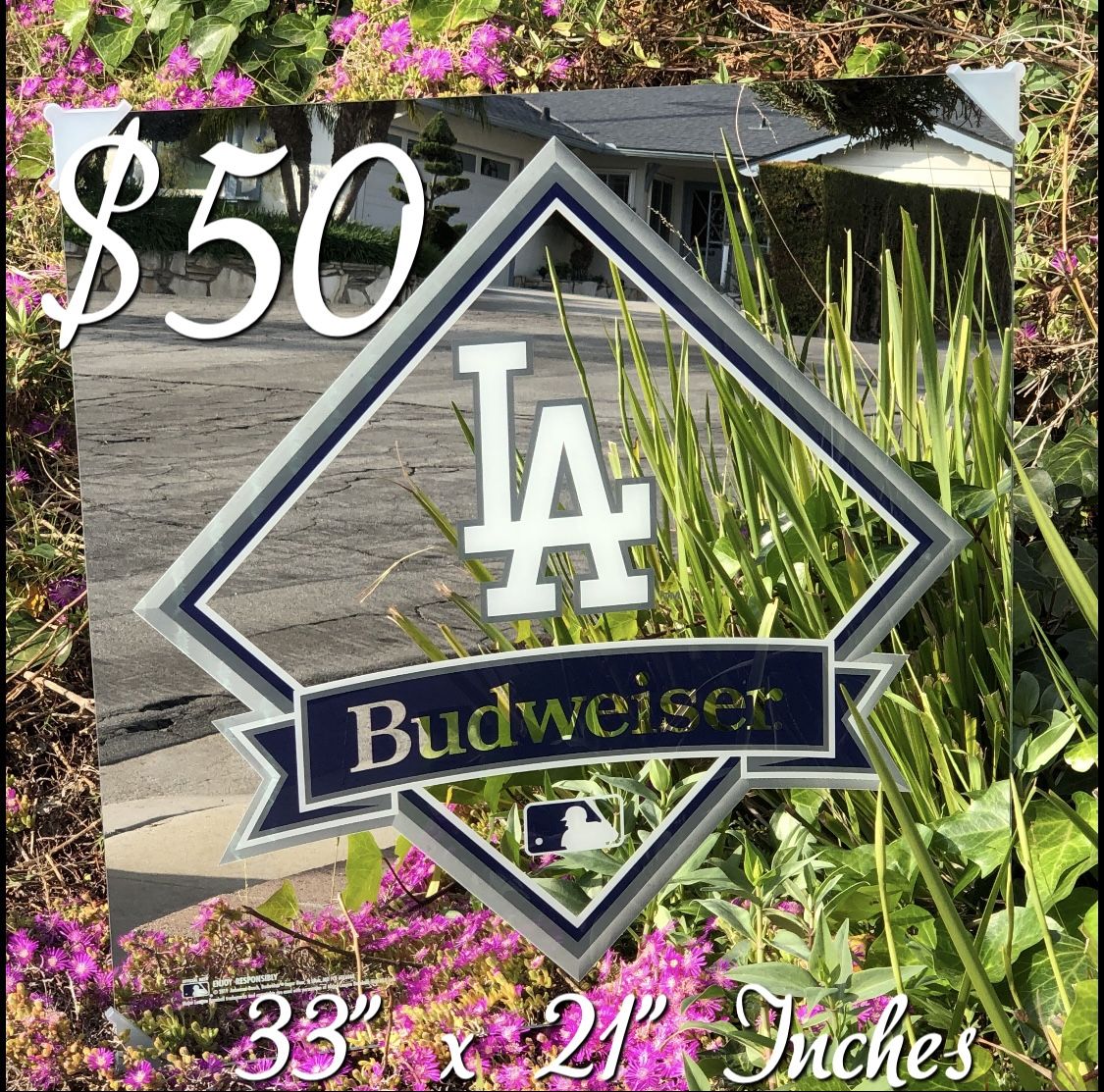 BUDWEISER LOS ANGELES DODGERS MLB BASEBALL BEER BAR REFLECTIVE MIRROR 33β x 21β inches $50 π₯ (PRICE FIRM) This mirror is new