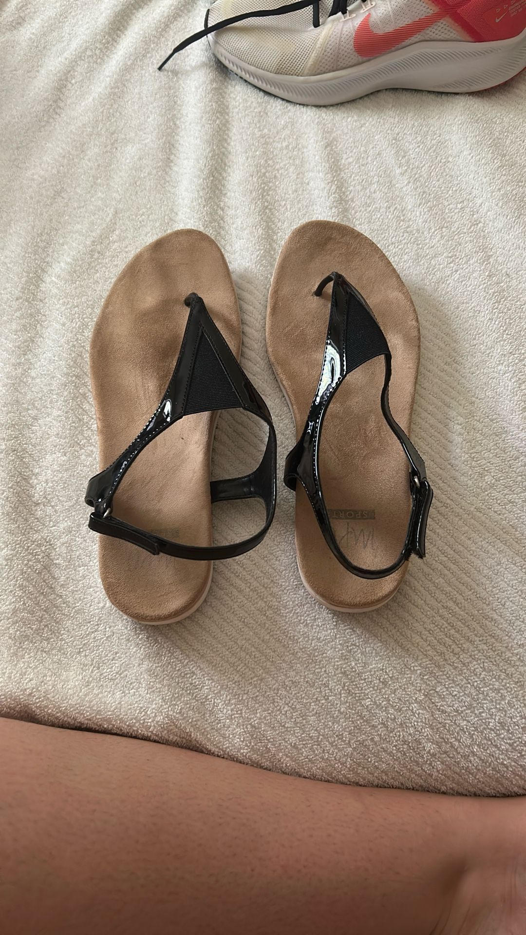 beige, black, strappy, sandals, lightly used, size 10 (originally 40)