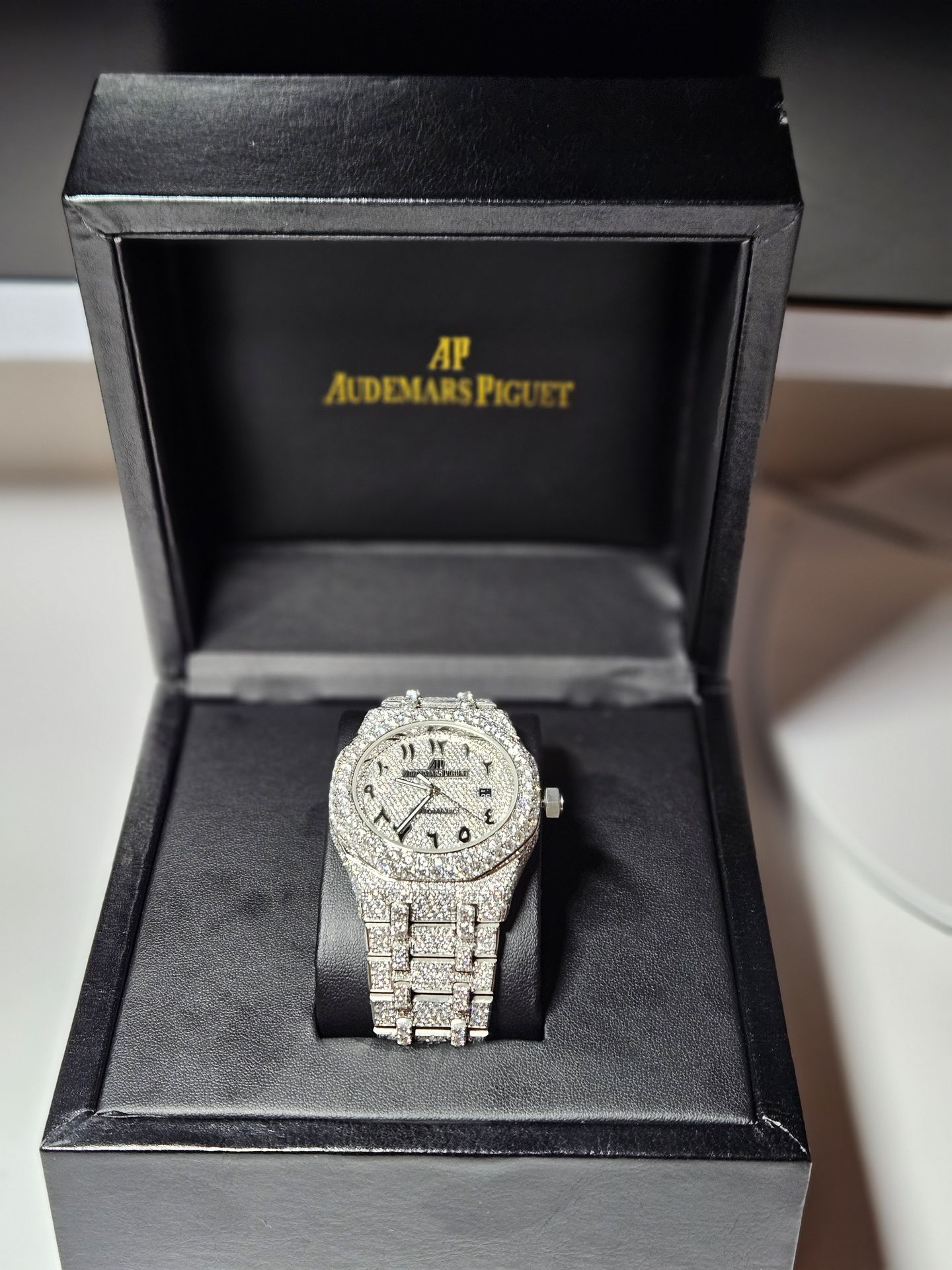 Brand new AP watch fully iced out with VVS1 Box and papers -VVS1 AP COLOR PASSES DIAMOND TESTER π -Meetups in public locations for safety If you want any other pics or videos just message π