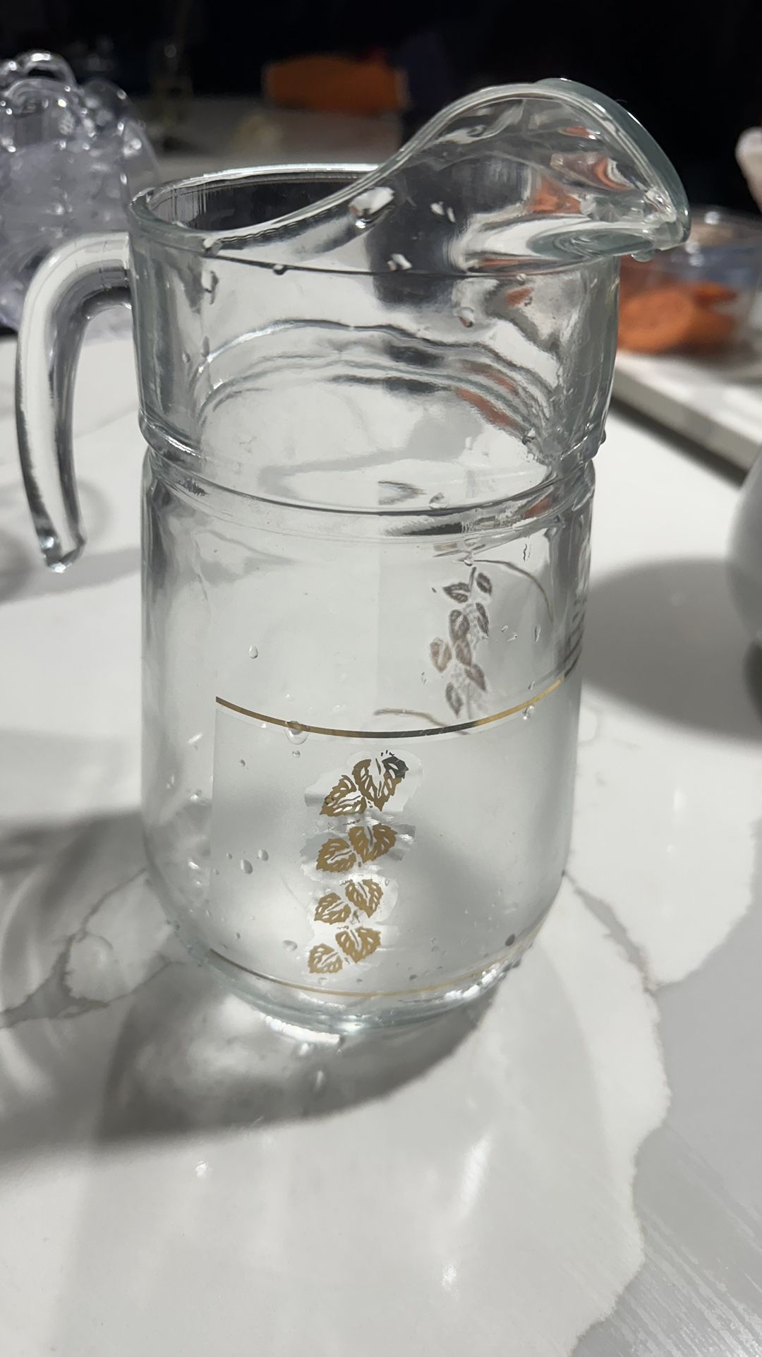 Vintage Glass Pasabahce Pitcher ~ Gold Leaf / Grapevine Frosted With Gold Trim