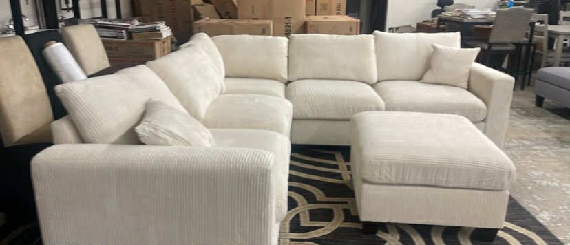 New 99x99 Corduroy Sectional Couch with Ottoman! Free Delivery 🚚!