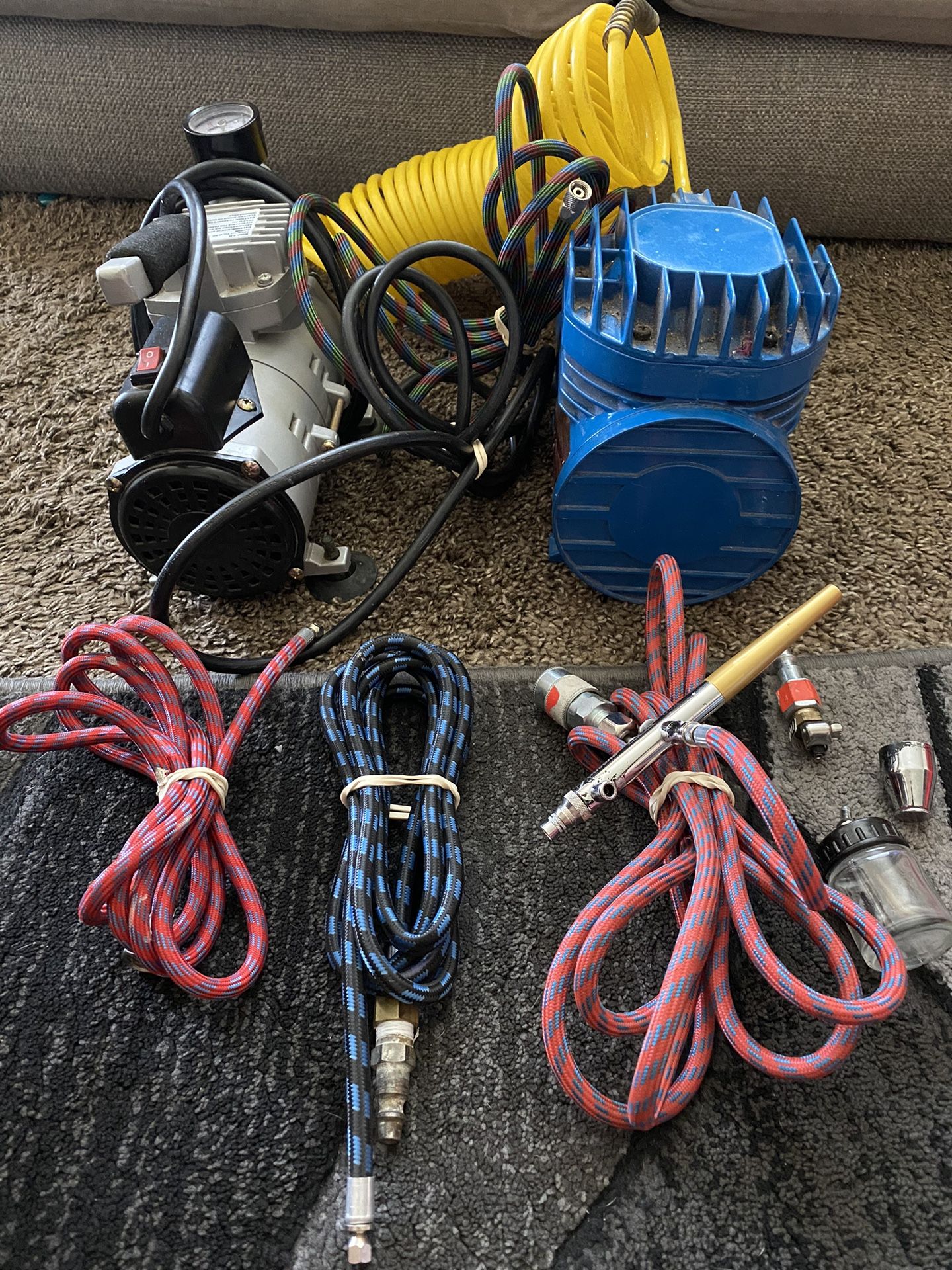 This is a paasche airbrush kit good to start with. ((You don't want to go with the cheaper ones as they always clog up and spit out paint on your art work)) . Start right 150$ for everything you see in the picture Just the gun alone cost me 150 All paasche high quality brand .