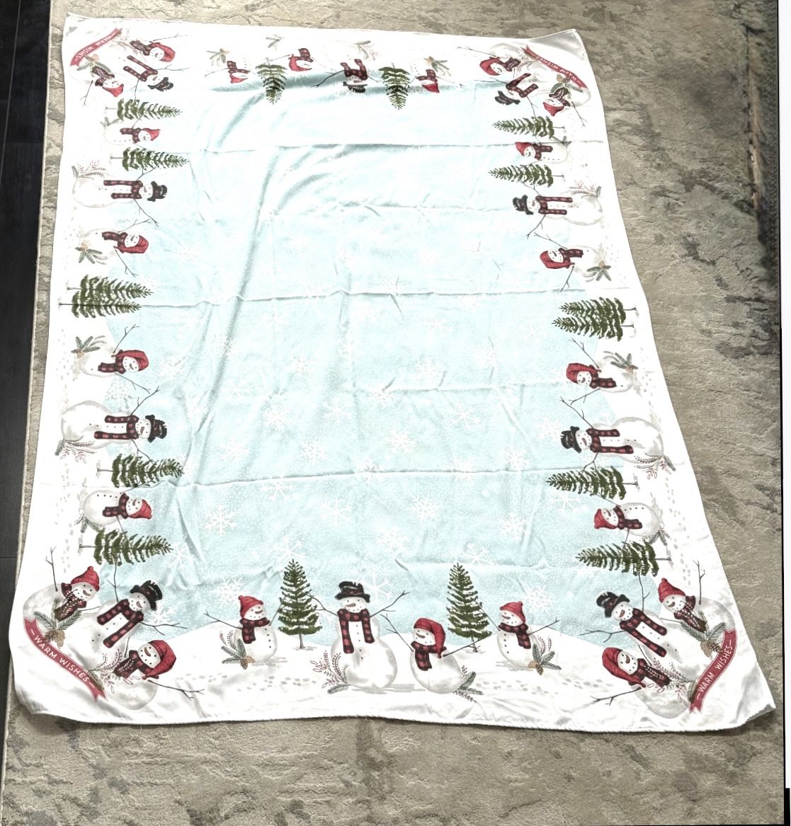 snowman and tree design table cloth. For a rectangle 6 person table Size 55”x81” Pickup in Glendale heights. X-posted