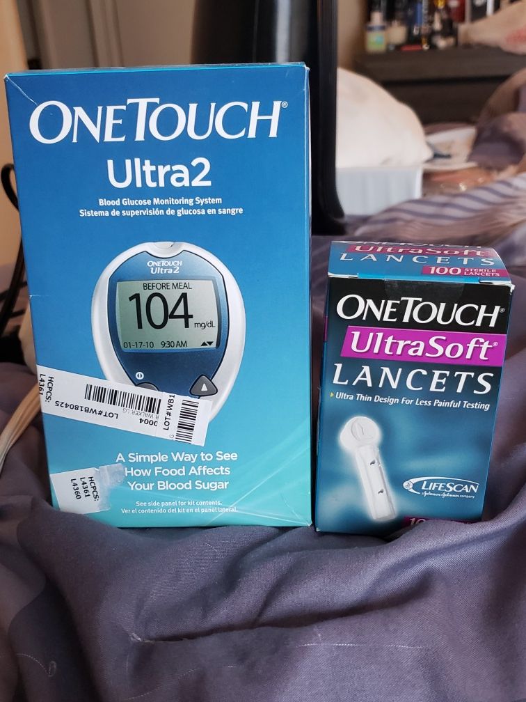 One Touch Glucose kit and lancets. Still in box. Serious buyers only 20.