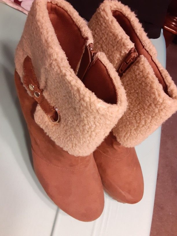 Womens size 10, Juicy wedge suede boots. Zippered side. excellent condition .