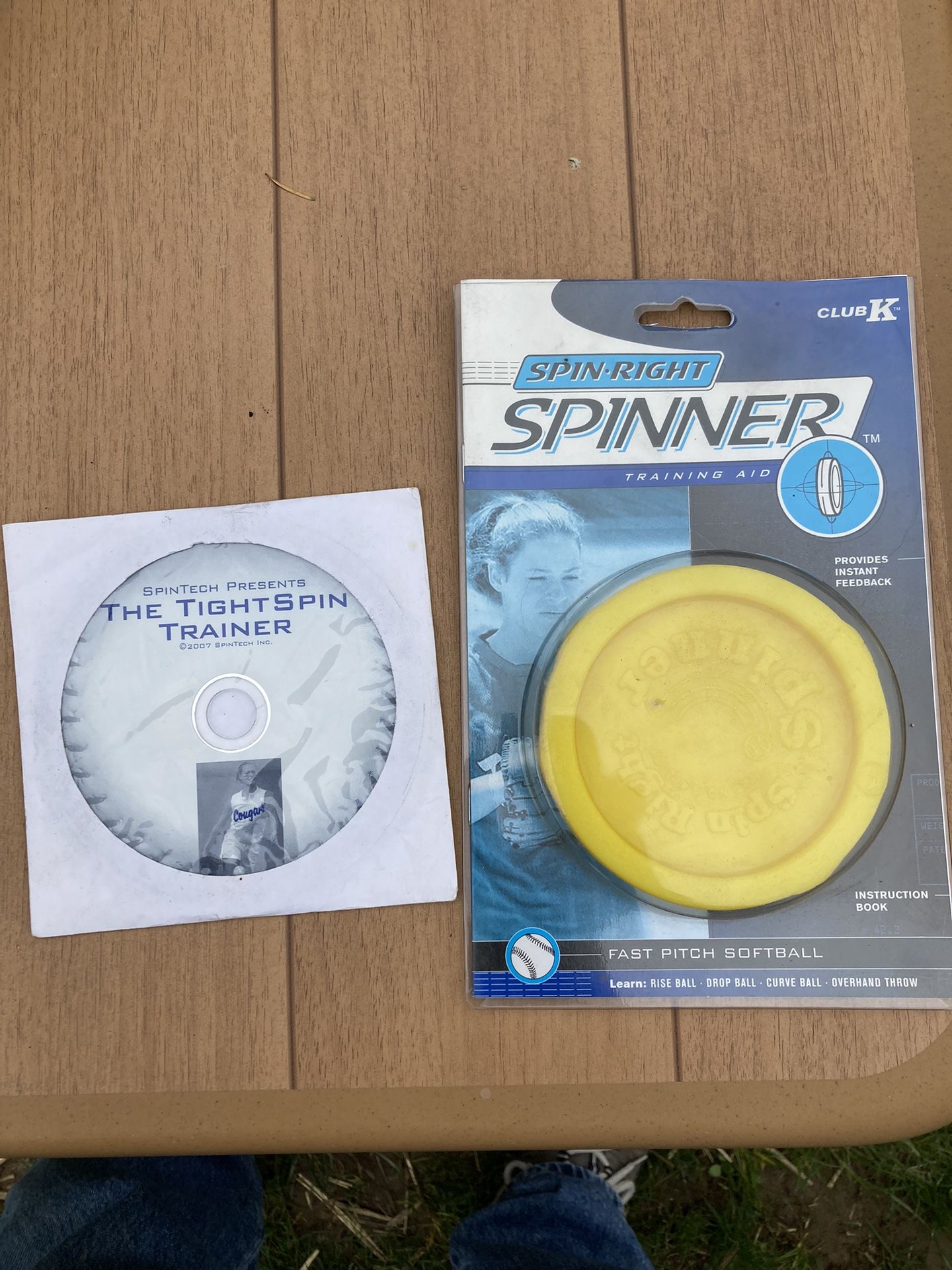 Fast pitch softball training aid. Teaches correct rotation for rise, drop, curve and change up. Also overhand throwing release. Comes with instruction book and a DVD from SpinTech. New never used.