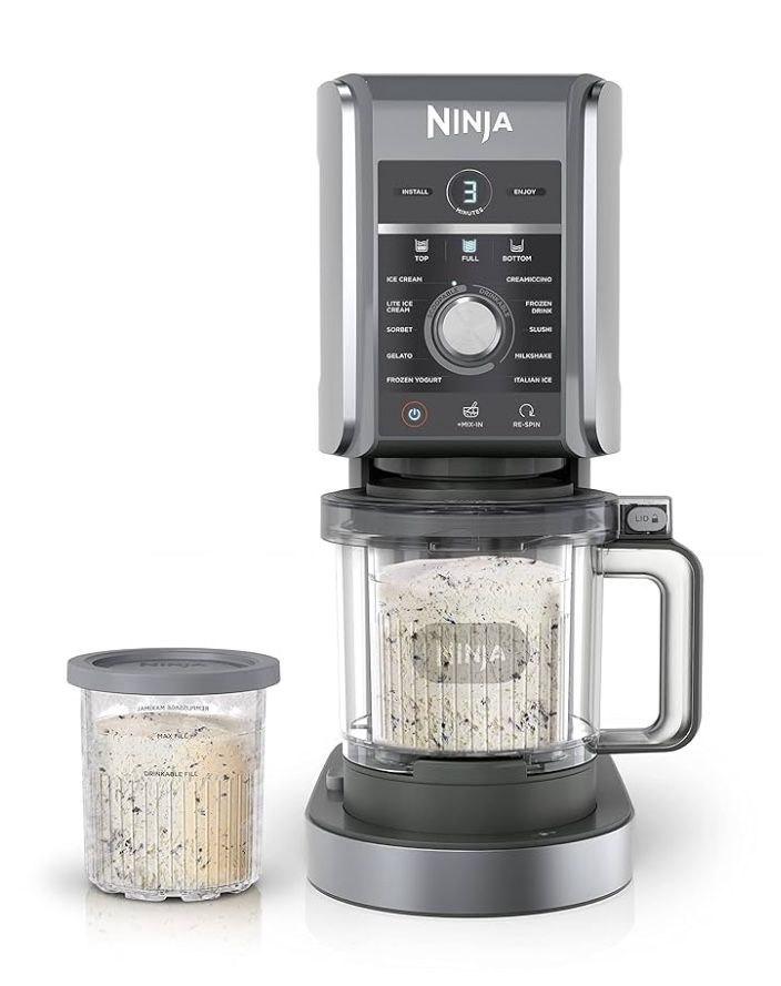 Ninja CREAMi Deluxe Ice Cream & Frozen Treat Maker for Ice Cream, Sorbet, Milkshakes, Frozen Yogurt, & More, 11-in-1, XL Capacity, Silver, Includes (2