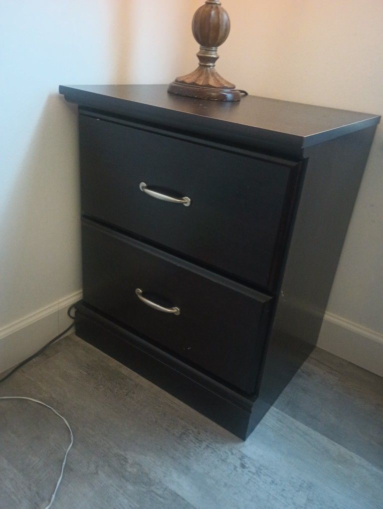 Expresso brown 2 drawer wooden nightstand, it's a set of 2 and both are in great condition. 31 inches wide 20 inches deep 30 inches high I'm looking for $50 each one