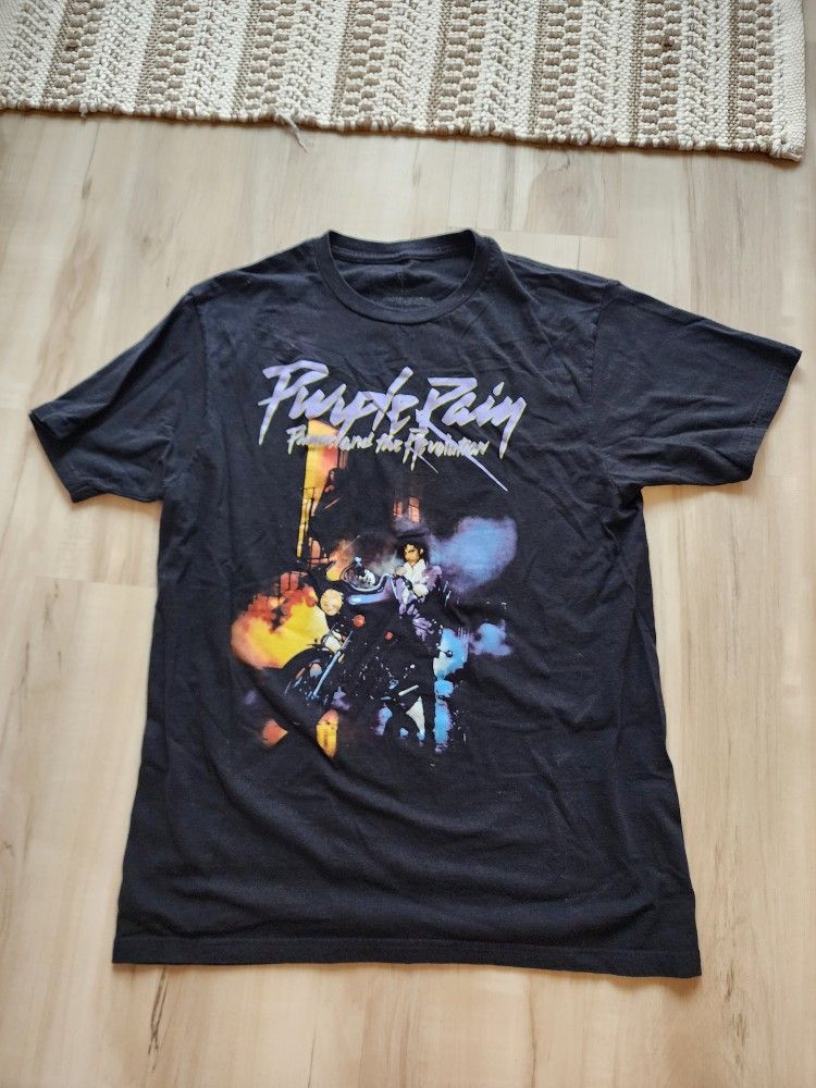 VINTAGE The Prince Estate Official & Approved Black Purple Rain T-shirt Size M. Show your love for Prince with this official Purple Rain Tour Band graphic t-shirt. The shirt features a solid pattern with a crew neckline and short sleeves, made from 100% cotton fabric that is machine washable. The shirt is black in color with an image of Prince on the front, making it a perfect addition to any music lover's wardrobe. The graphics are bright. There is no damage on this shirt. PLEASE LOOK AT ALL OF THE PICTURES AND ZOOM IN TO SO YOU CAN DETERMINE THE CONDITION FOR YOURSELF BEFORE BUYING . THE PICTURES SERVE AS PART OF THE DESCRIPTION. I SHIP SAME BUSINESS DAY IF PURCHASED BEFORE 1030AM. NEXT BUSINESS DAY IF PURCHASED AFTER 1030AM EST.