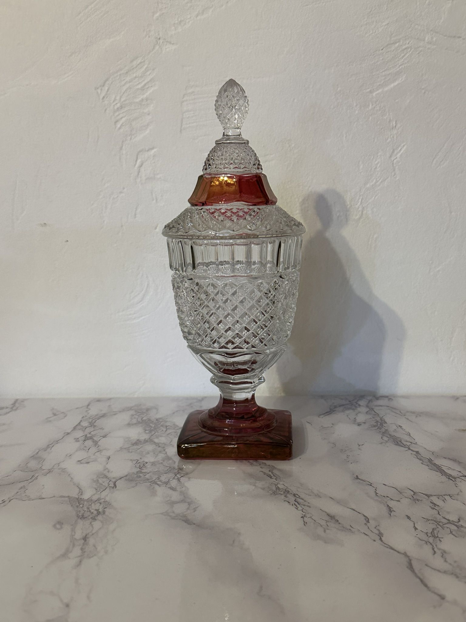 Westmoreland Glass Waterford Ruby Stained Crystal 9" Lidded Candy Jar 1930s