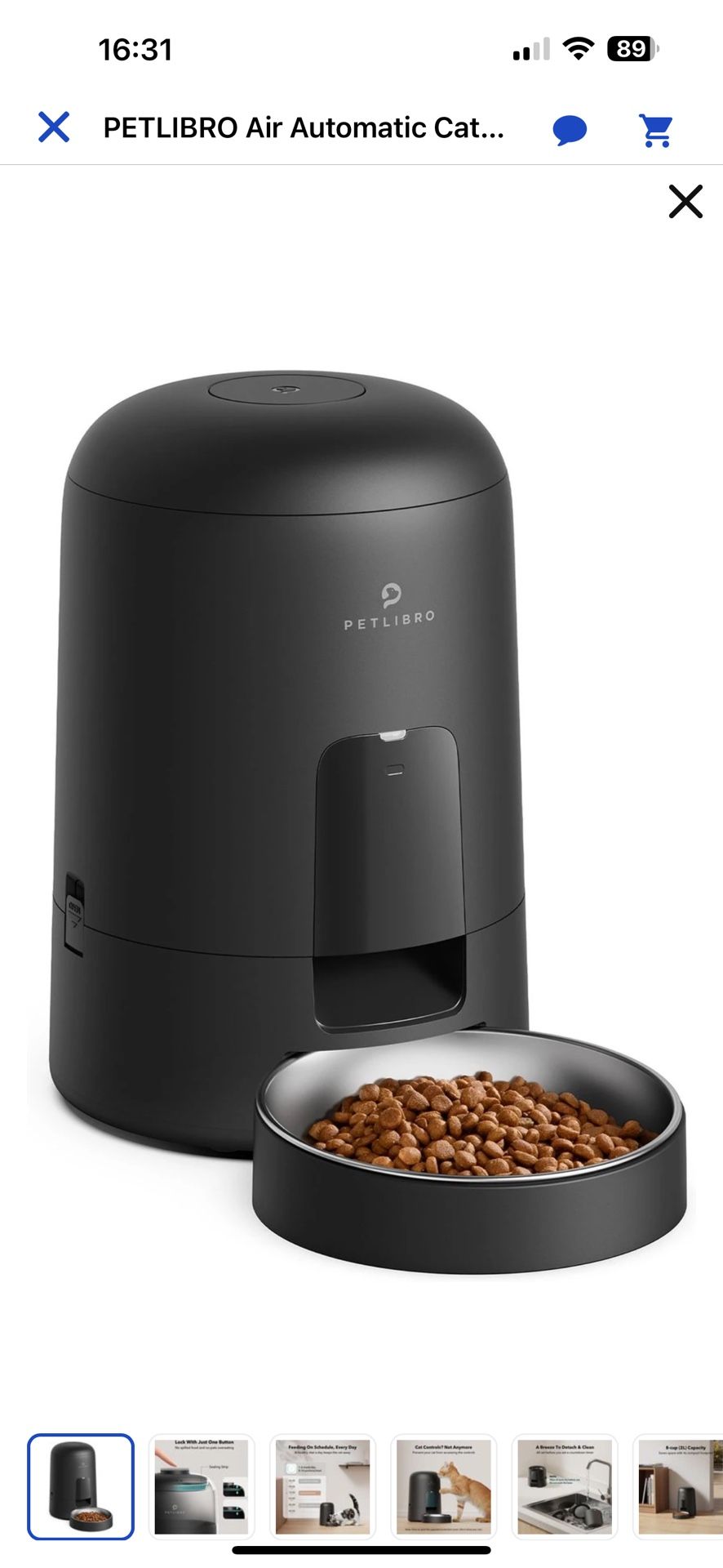 Petlibro Air Automatic Cat Feeder with Battery Powered Dog & Cat Food Dispenser, Black, 2-litter