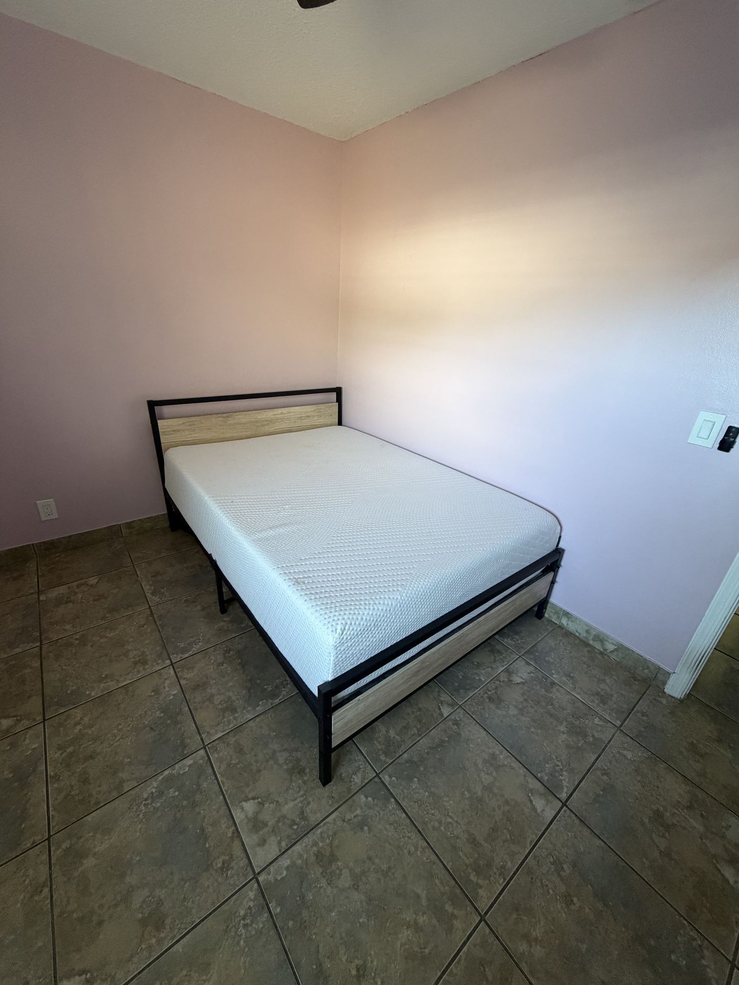 Queen size mattress and bed frame for sale. Mattress is memory foam. Both purchased off Amazon 1 year ago and only used a few times (with a mattress protector) in our guest bedroom. Cash only. Local pickup.