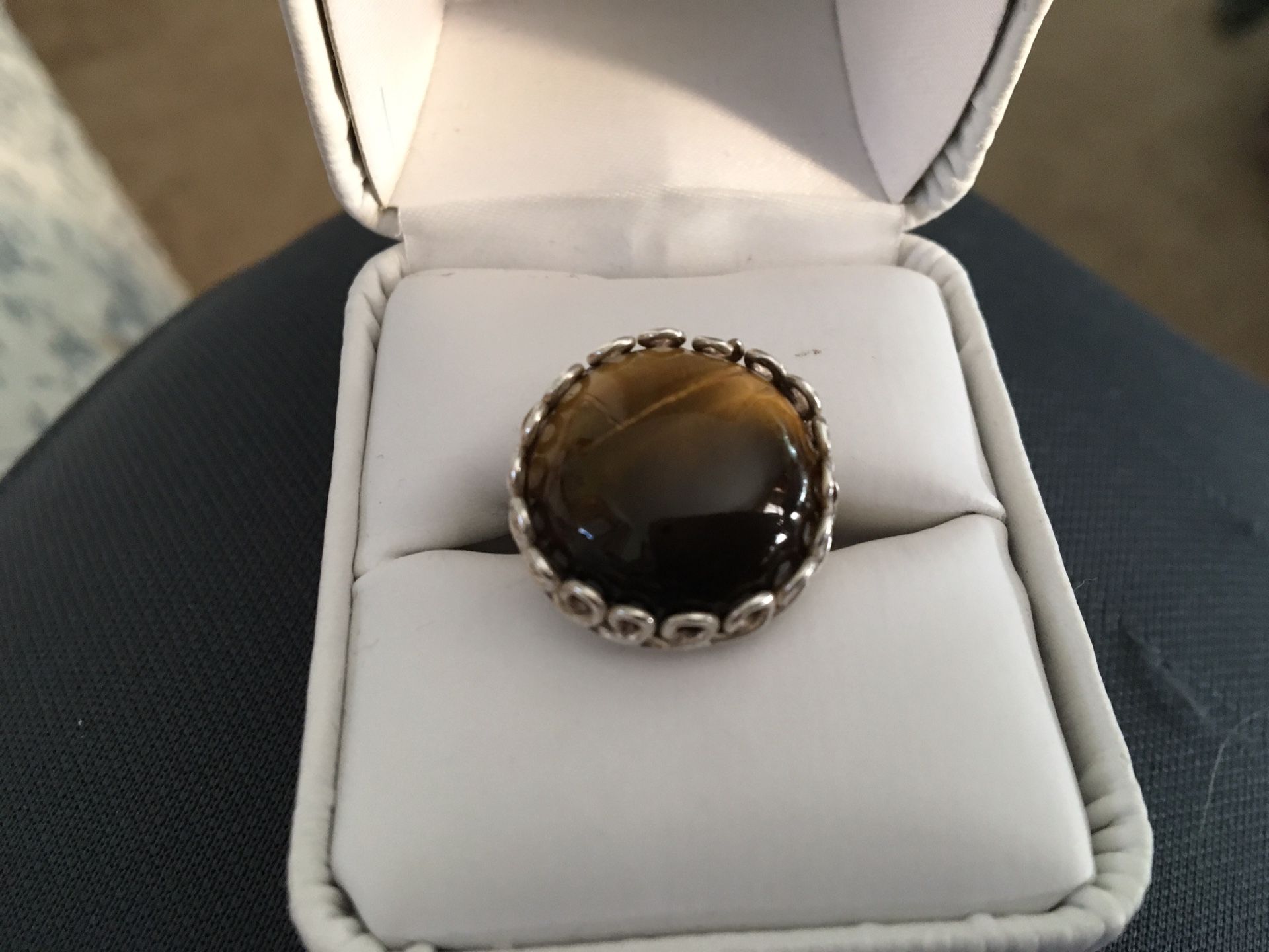 Sterling silver round tiger eye ring size 7