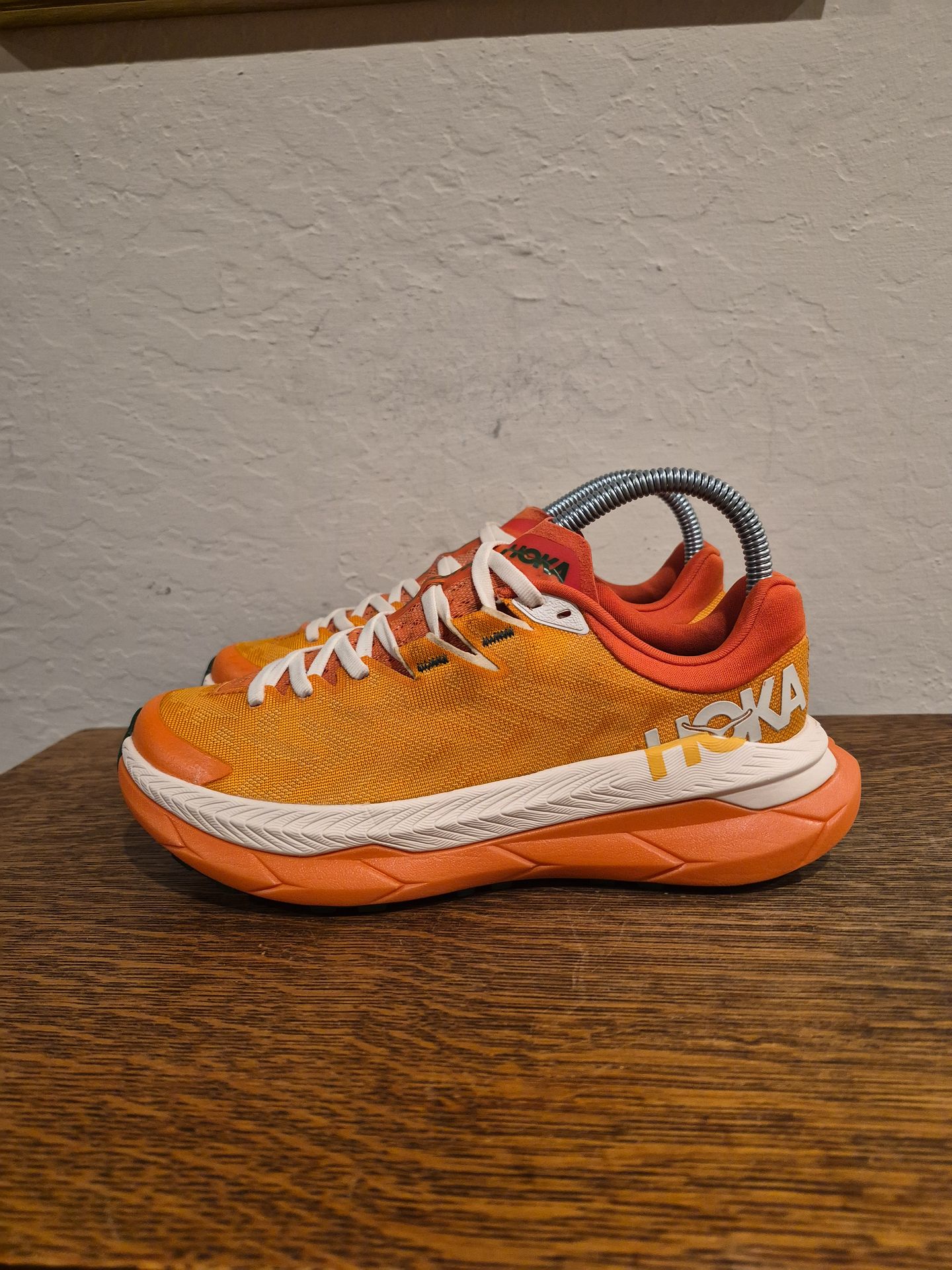 Hoka One One U Tecton X Trail Athletic Running Shoes Women's Size US 6 UK 5 EUR 37 1/3 Cm 23 Vibrant orange with green accents