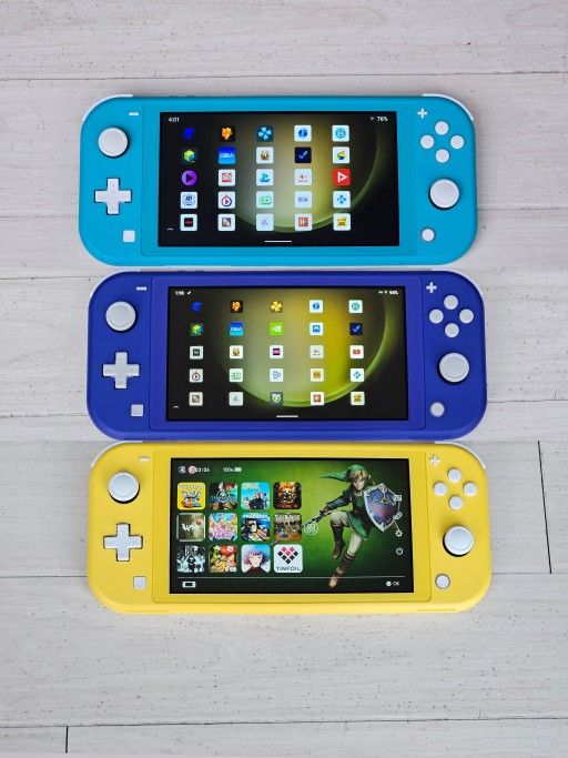 NO TRADES PRICE FIRM $250 EACH 🔥 WE OFFER MODDING SERVICES !!!🔥 UP FOR SALE IS NINTENDO LITE IN EXCELLENT CONDITION, COMES WITH CHARGER AND A2 GRADE MICRO SD CARD PRE-LOADED WITH UP TO 200 TOP SWITCH GAME AND 10000 RETRO CLASSIC GAMES, PLUS FREE ACCESS TO LATEST MOVIES, TV SHOWS AND LIVE SPORTS PRICE FOR EACH INCLUDES MICRO SD (LEXAR PLAY RED, AMAZON BASIC SANDISK EXTREME, SAMSUNG PRO PLUS) $250 - 512GB TRIPLE BOOT $300 - 1TB DUAL BOOT $350 - 1TB TRIPLE BOOT RETRO CLASSIC GAMES: OVER 10000 RETRO CLASSIC GAMES FROM MOST POPULAR SYSTEMS, RUNNING FULL SPEED WITH BOX ATRS AND MULTI-PLAYERS SUPPORT, EASY ADDING YOUR OWN ROMS NINTENDO DS - 500 ROMS PS1 - 200 ROMS PS2 - 5 ROMS SATURN - 20 ROMS PSP - 30 ROMS N64 - 300 ROMS DREAMCAST - 100 ROMS ARCADE MAME - 3000 ROMS NEO-GEO - 800 ROMS GAMEBOYS - 3000 ROMS NES, SNES, SEGA - 5000 ROMS TRIPLE BOOT SYSTEMS: 1. THE STOCK ORIGINAL SYSTEM: PLAY ONLINE WITH LEGIT OWNED GAMES 2. CUSTOM FIRMWARE SYSTEM: FULL SET OF HOMEBREW TOOLS, MISSION CONTROL (USING CONTROLLER FROM OTHER CONSOLE PLATFORMS), GAME CHEATS, CUSTOM THEMES (2300 ONLINE THEMES FOR INSTANT DOWNLOAD), OVERCLOCK UTILITIES TO RUNNING GAMES AT 60FPS 3. ANDROID OS: USE YOUR SWITCH AS ANDROID TABLET, COMES WITH GOOGLE PLAY STORE, YOUTUBE (ADS FREE), KODI, NVIDIA CLOUD GAMING, ANDROID GAMES, XBOX GAME PASS, PLUS FREE ACCESS TO THE LATEST MOVIES, TV SHOWS, LIVE TV, LIVE SPORTS, PAY-PER- VIEWS, ALL NEWLY RELEASED THEATRICAL MOVIES, WITH NO MONTHLY SUBSCRIPTION FEES OR HIDDEN FEES I ALSO OFFER MODDING SERVICE FOR ALL SWITCH MODELS (V1 V2 LITE OLED), THE RESULT COME OUT IDENTICAL TO THIS LIST, ANY QUESTIONS PLEASE FEEL FREE TO MESSAGE ME HERE IS THE TOP 100 SWITCH GAMES LIST: GAME LIST CAN BE CUSTOMIZED ANIMAL CROSSING NEW HORIZONS ASTRAL CHAIN BAYONETTA 3 BURNOUT PARADISE REMASTERED CALL OF JUAREZ GUNSLINGER CAPCOM FIGHTING COLLOECION 1+2 CONTRA OPERATION GALUGA CRASH BANDICOOT 4 IT'S ABOUT TIME DEMON SLAYER 2 DISNEY ILLUSION ISLAND DONKEY KONG COUNTRY RETURNS DONKEY KONG COUNTRY TROPICAL FREEZE CLUBHOUSE GAMES 51 CRUIS'N BLAST CULT OF THE LAMB DOUBLE DRAGON GAIDEN  RISE OF THE DRAGONS DRAGON BALL FIGHTERZ FANTASY LIFE I THE GIRL WHO STEALS TIME FIRE EMBLEM ENGAGE GHOSTS 'N GOBLINS RESURRECTION GRAND THEFT AUTO III – THE DEFINITIVE EDITION GRAND THEFT AUTO SAN ANDREAS – THE DEFINITIVE EDITION GRAND THEFT AUTO VICE CITY – THE DEFINITIVE EDITION HADES II HOGWARTS LEGACY HOLLOW KNIGHT SILKSONG HYRULE WARRIORS AGE OF CALAMITY KIRBY AND THE FORGOTTEN LAND KIRBY’S RETURN TO DREAM LAND DELUXE KIRBY STAR ALLIES LEGO® HORIZON ADVENTURES™ LITTLE NIGHTMARES III LUIGI’S MANSION 2 HD LUIGIS MANSION 3 MARIO & LUIGI BROTHERSHIP MARIO + RABBIDS® SPARKS OF HOPE MARIO KART 8 DELUXE MARIO PARTY SUPERSTARS MARIO VS. DONKEY KONG METROID DREAD METROID PRIME REMASTERED MINECRAFT MORTAL KOMBAT™ 1 NARUTO X BORUTO Ultimate Ninja STORM CONNECTIONS NEED FOR SPEED™ HOT PURSUIT NEW SUPER MARIO BROS. U DELUXE NIERAUTOMATA THE END OF YORHA EDITION NIKODERIKO THE MAGICAL WORLD NINTENDO SWITCH SPORTS OCTOPATH TRAVELER II ORI AND THE WILL OF THE WISPS PIKMIN 4 POKEMON LEGENDS ARCEUS POKÉMON LEGENDS Z-A POKÉMON SCARLET POKÉMON VIOLET PRINCE OF PERSIA THE LOST CROWN RED DEAD REDEMPTION SHINOBI: Art of Vengeance SIFU SNIPPERCLIPS SONIC RACING: CROSSWORLDS SONIC SUPERSTARS SPLATOON 3 STARDEW VALLEY STREET FIGHTER® 30TH ANNIVERSARY COLLECTION STREETS OF RAGE 4 SUPER MARIO 3D ALL-STARS SUPER MARIO 3D WORLD + BOWSER'S FURY SUPER MARIO BROS. WONDER SUPER MARIO GALAXY 1+2 SUPER MARIO MAKER 2 SUPER MARIO ODYSSEY SUPER MARIO PARTY SUPER MARIO PARTY JAMBOREE SUPER MARIO RPG SUPER SMASH BROS. ULTIMATE TEENAGE MUTANT NINJA TURTLES ARCADE WRATH OF THE MUTANTS TEENAGE MUTANT NINJA TURTLES MUTANTS UNLEASHED TEENAGE MUTANT NINJA TURTLES SHREDDER'S REVENGE TEENAGE MUTANT NINJA TURTLES SPLINTERED FATE THE KING OF FIGHTERS XIII GLOBAL MATCH THE LEGEND OF ZELDA BREATH OF THE WILD THE LEGEND OF ZELDA ECHOES OF WISDOM THE LEGEND OF ZELDA LINK'S AWAKENING THE LEGEND OF ZELDA SKYWARD SWORD HD THE LEGEND OF ZELDA TEARS OF THE KINGDOM ULTRA STREET FIGHTER® II THE FINAL CHALLENGERS WARIOWARE GET IT TOGETHER! WARIOWARE MOVE IT! XENOBLADE CHRONICLES X DEFINITIVE EDITION YOSHI'S CRAFTED WORLD SPORTS GAMES: (OPTIONAL) NBA2K26 EA SPORTS FC 26 (FIFA 26) MLB25 TONY HAWK'S PRO SKATER 1+2 & 3+4