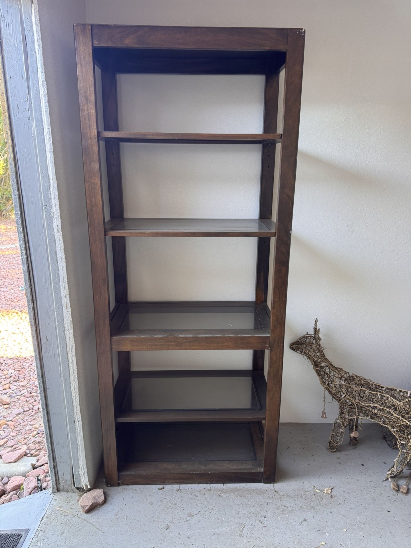 Tall Brown Wood And Glass Shelf