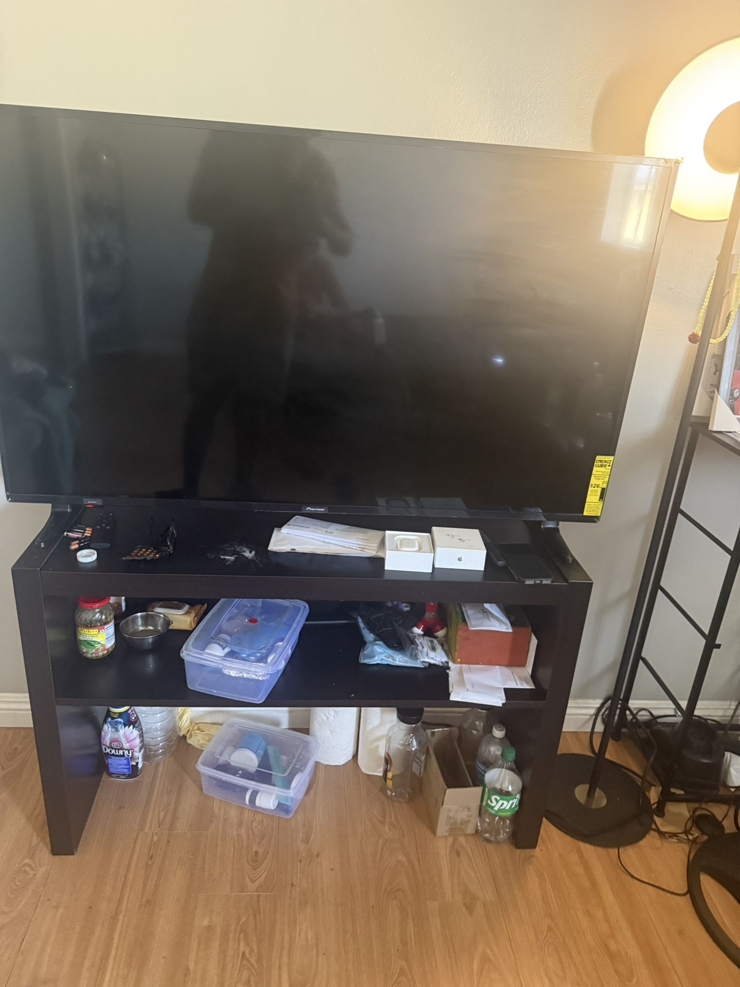 Hi its brand new just open the box but never use 55 inches with TV stand ππ»